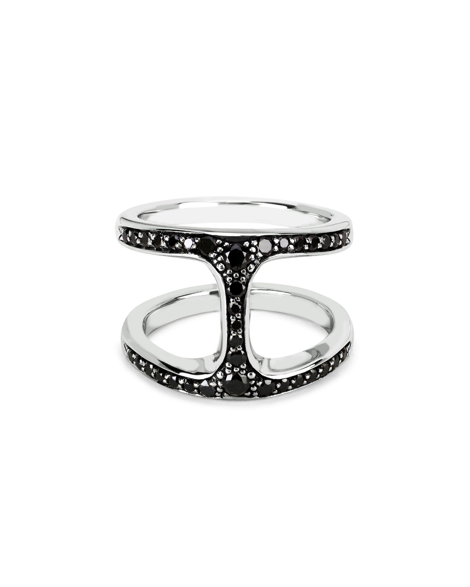 This Sterling Silver Phantom Black Diamond Double Row Statement Ring by HOORSENBUHS, from the Phantom collection, exudes dark glamour with its black diamond accents and bold double-row design. Perfect for making a striking statement.