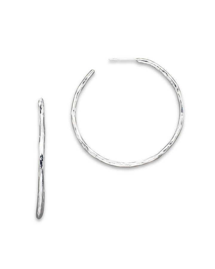 These Sterling Silver Hammered Hoop Earrings by IPPOLITA, from the Silver collection, feature a sleek, hammered design in sterling silver. Their 1.6' diameter and timeless style make them perfect for everyday wear.