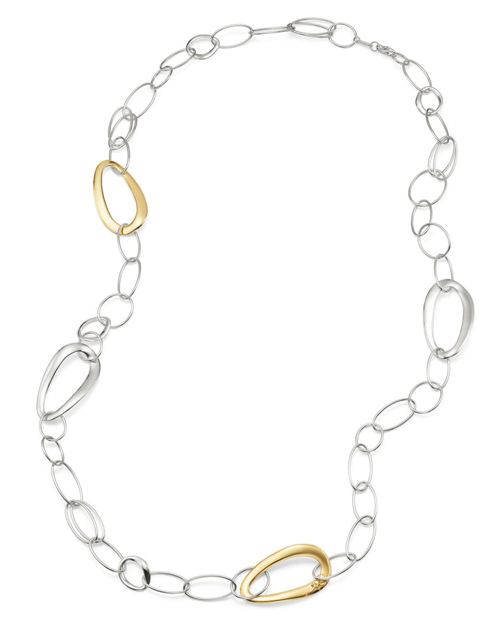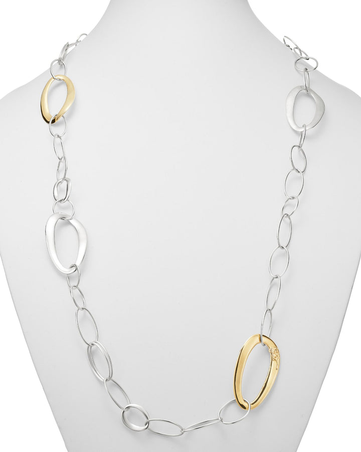 This Sterling Silver & 18K Yellow Gold Chimera Chain Necklace, 41.5' by IPPOLITA, from the Chimera collection, features long sterling silver links accented with two 18K yellow gold links. Its elegant design makes it perfect for layering or wearing solo.