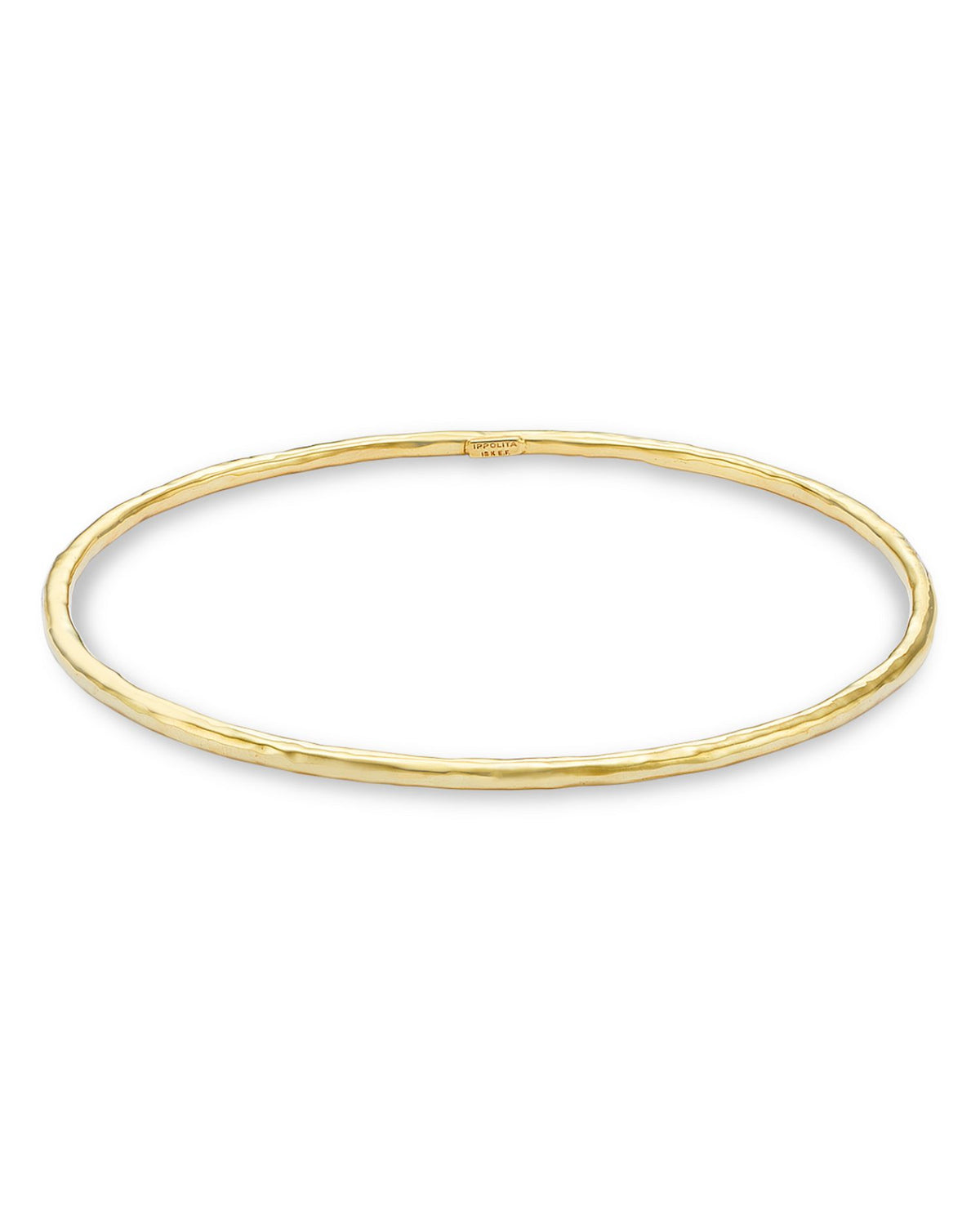 This Ippolita 18K Gold ?1 Glamazon Bangle features crinkle-textured 18K gold, lending a refined, shiny touch to your everyday look. Its bold, elegant design makes it a versatile statement piece for any occasion.