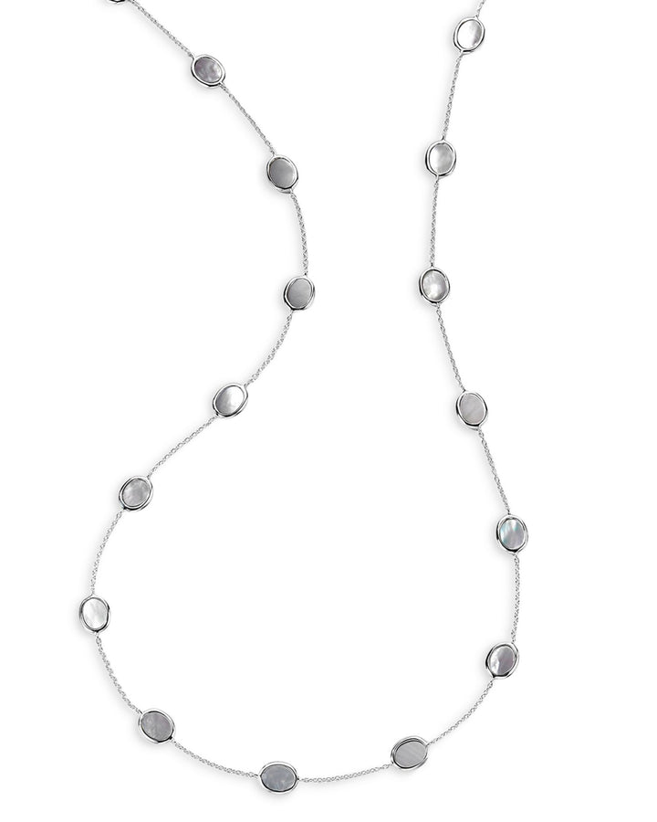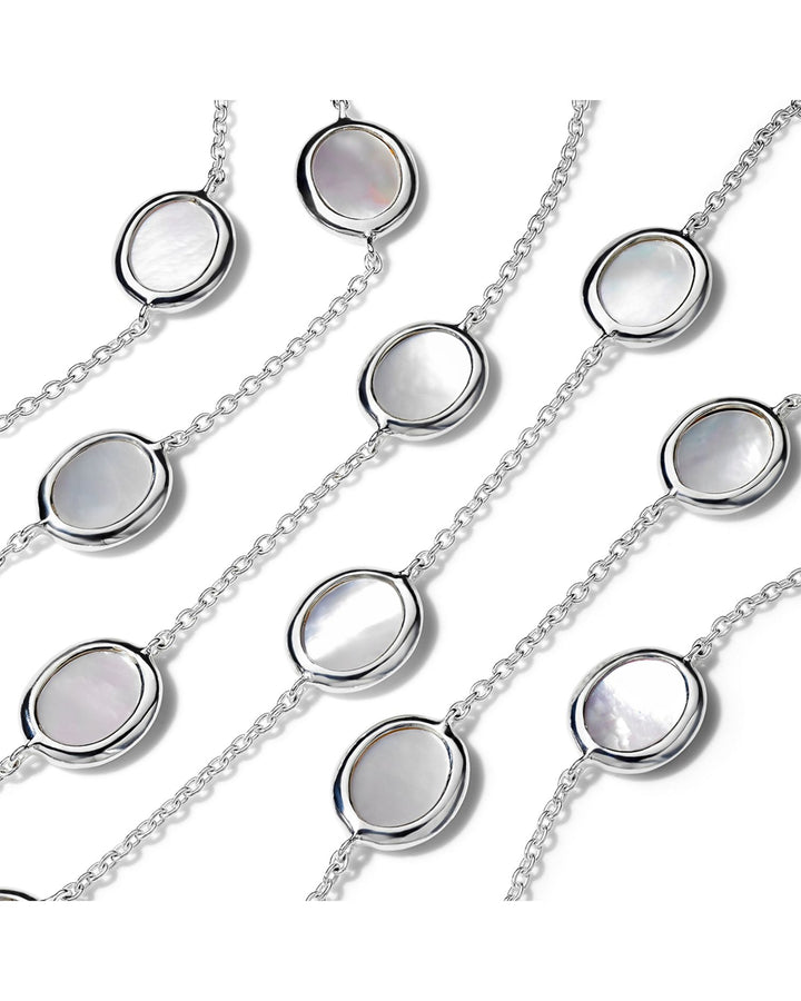 This Sterling Silver Rock Candy Mother of Pearl Statement Necklace, 35', by IPPOLITA, from the Rock Candy collection, features a stunning long-length design with shimmering mother of pearl stones. Perfect for making a bold, elegant statement.