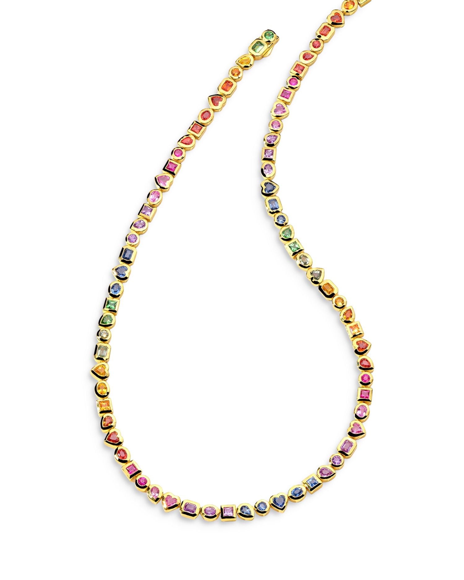 18K Rock Candy® Rainbow Sapphire & Tsavorite Mixed Cut Bezel Tennis Necklace, 17' - Exclusive