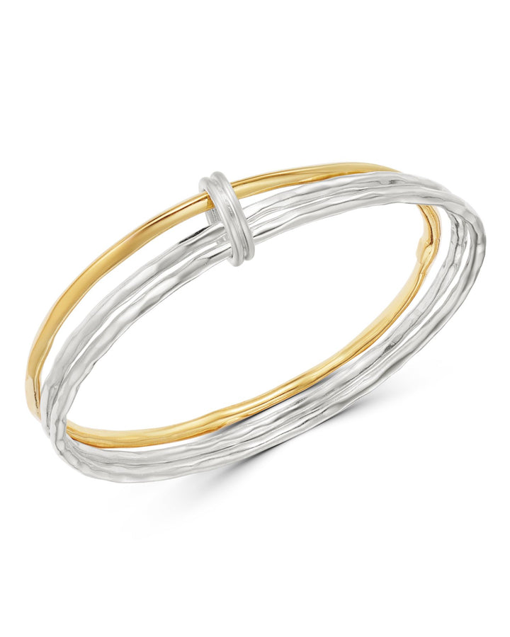 Sterling Silver & 18K Yellow Gold Chimera Mixed-Texture Bangle Set