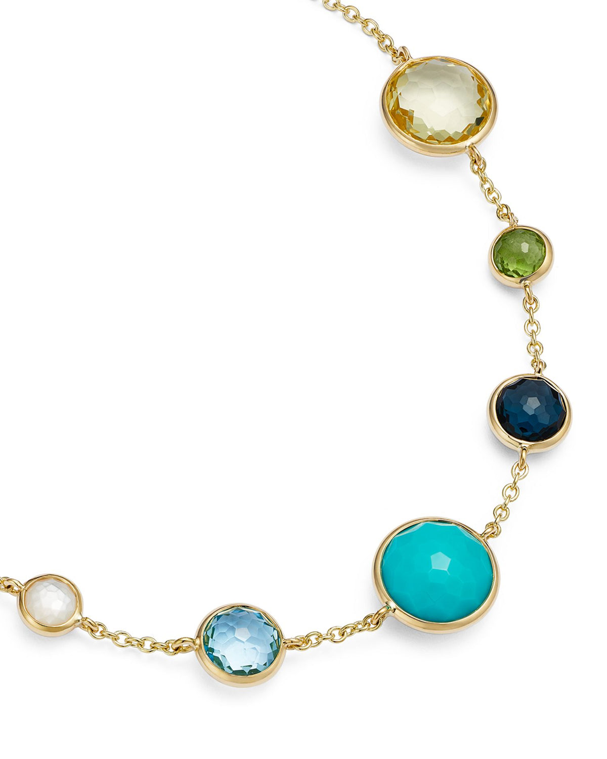 This 18K Yellow Gold Lollipop 7-Stone Link Bracelet by IPPOLITA combines vibrant gemstones with timeless elegance, showcasing amethyst, mother-of-pearl, and other colorful stones in a beautiful gold link design. A versatile piece for any occasion.