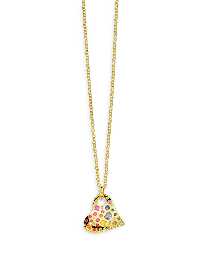 18K Rock Candy® Rainbow Sapphire, Tsavorite & Diamond Heart Pendant Necklace by IPPOLITA from the Rock Candy® collection, this exclusive piece features a colorful heart-shaped pendant adorned with vibrant sapphires, tsavorite, and a small diamond accent. The necklace is a reflection of the colorful spirit of Tuscany and the Mediterranean.