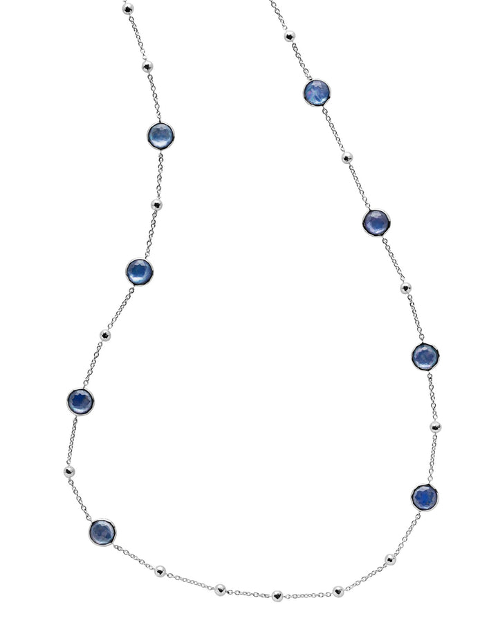 This Sterling Silver Rock Candy® Mother-of-Pearl, Lapis & Clear Quartz Triplet Statement Necklace by Ippolita adds bold elegance to any outfit. From the Rock Candy® collection, this 38-inch necklace features dramatic blue triplet stones set in sterling silver, making it ideal for statement-making style.