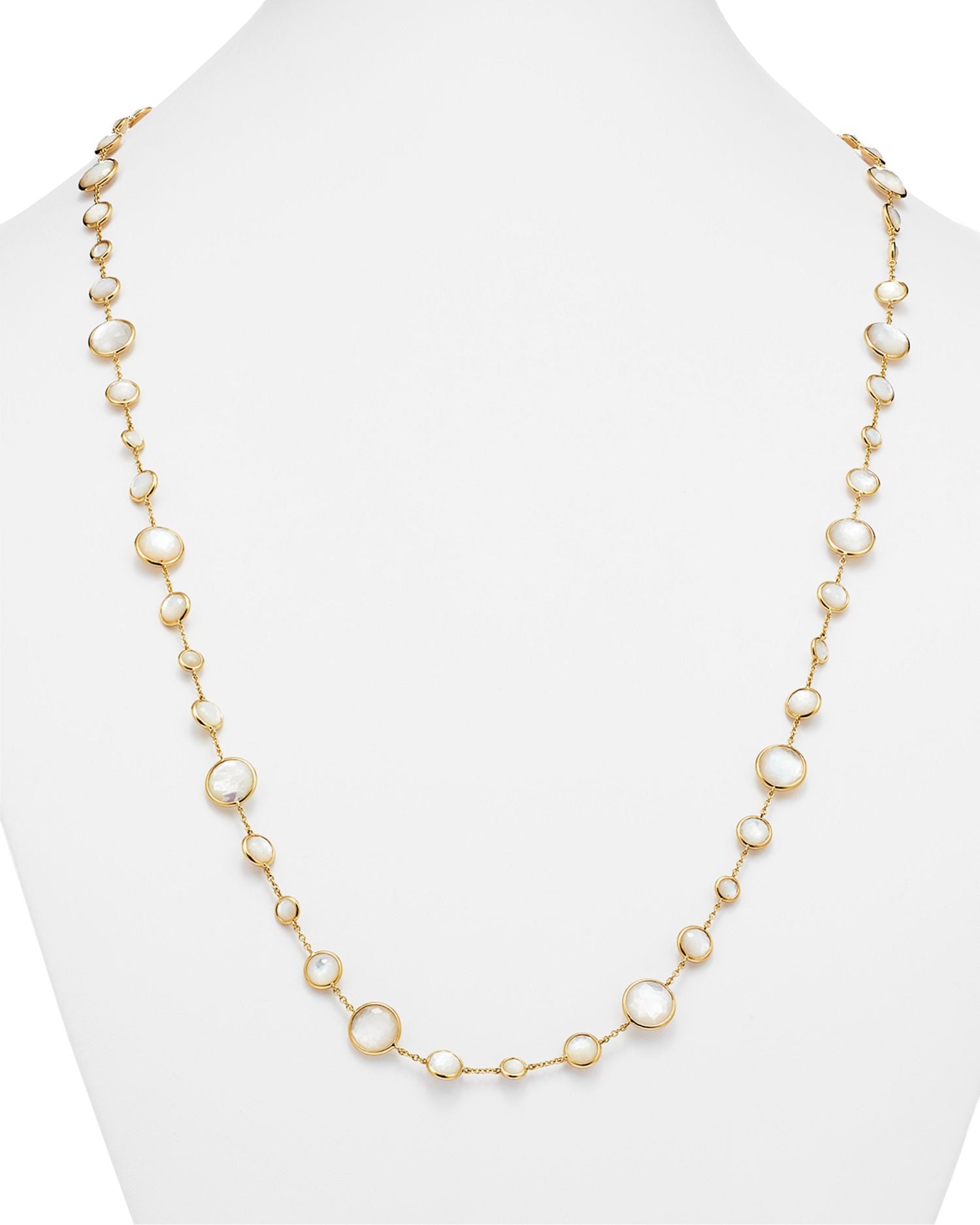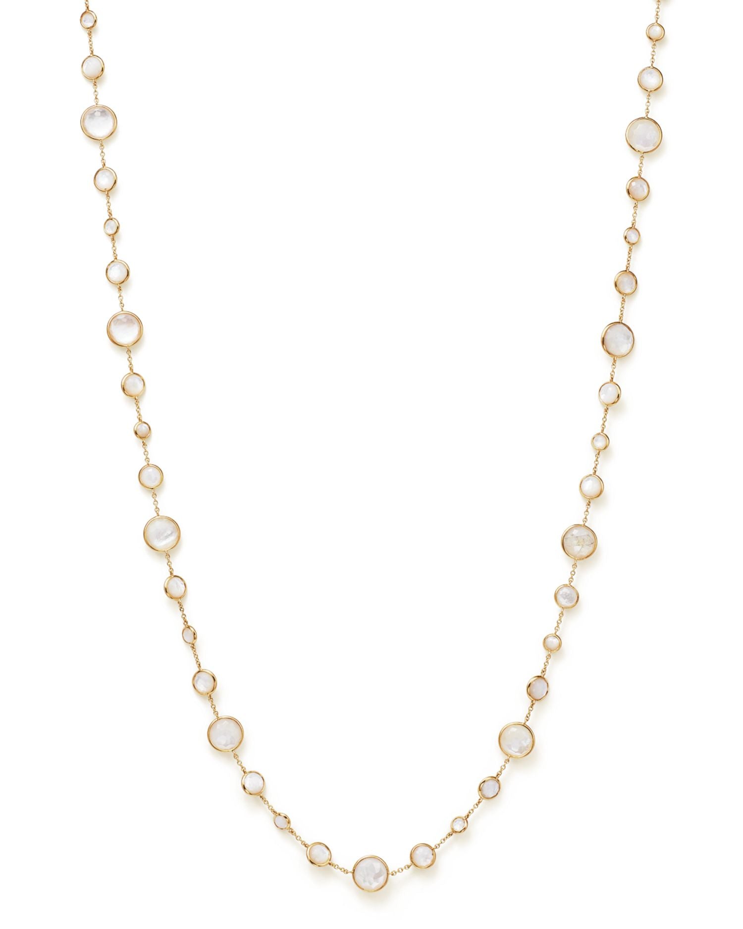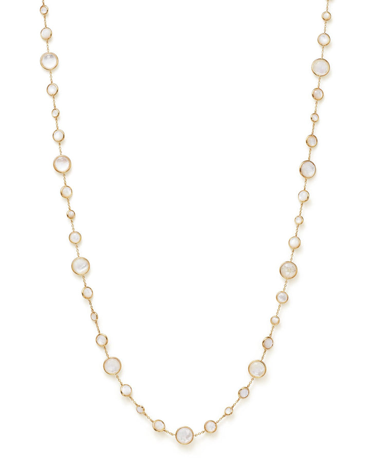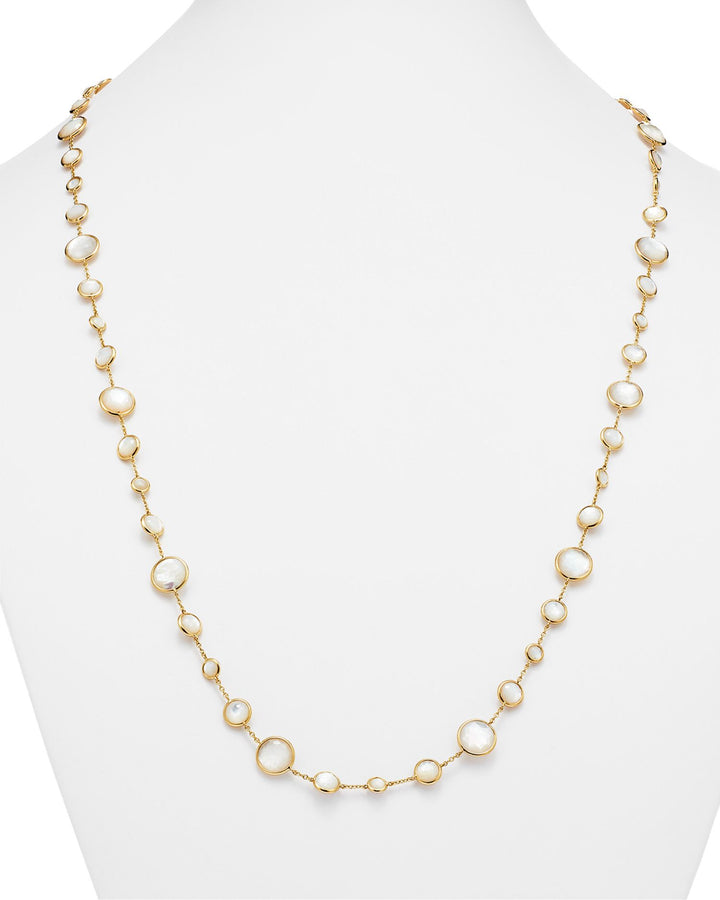 This 18K Gold Lollipop® Lollitini Necklace in Mother-Of-Pearl Doublet and Clear Quartz by Ippolita showcases luminous gemstones in a versatile 36-inch design. Its refined elegance makes it ideal for layering or wearing as a statement piece.