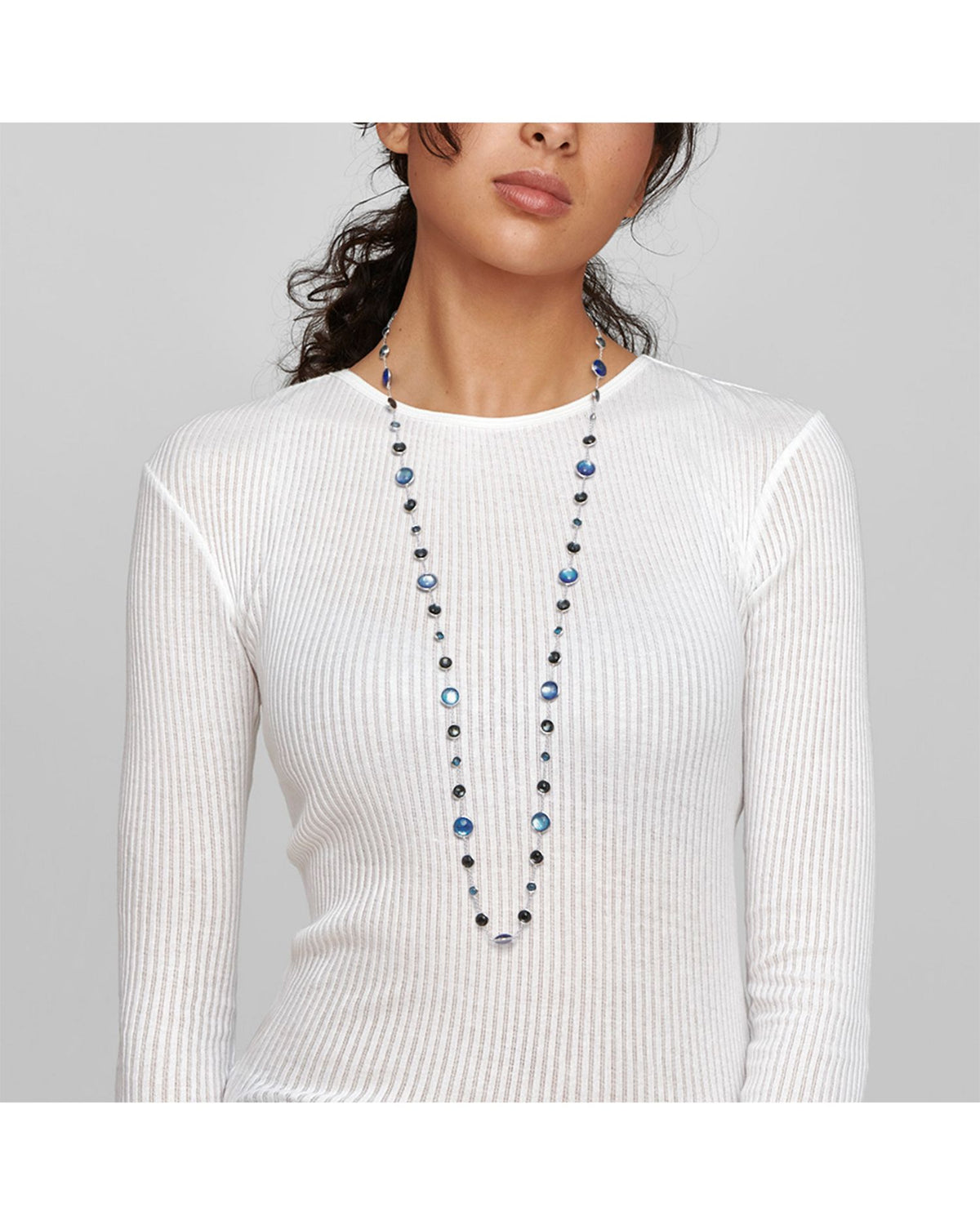 This Sterling Silver Lollipop Lapis Doublet, London Blue Topaz & Hematite Necklace in Eclipse by Ippolita combines vibrant blue tones with luminous silver. Featuring stations of lapis triplets, London blue topaz, and hematite, this 36-inch necklace adds a refined, colorful touch to your look, perfect for layering or standalone wear.