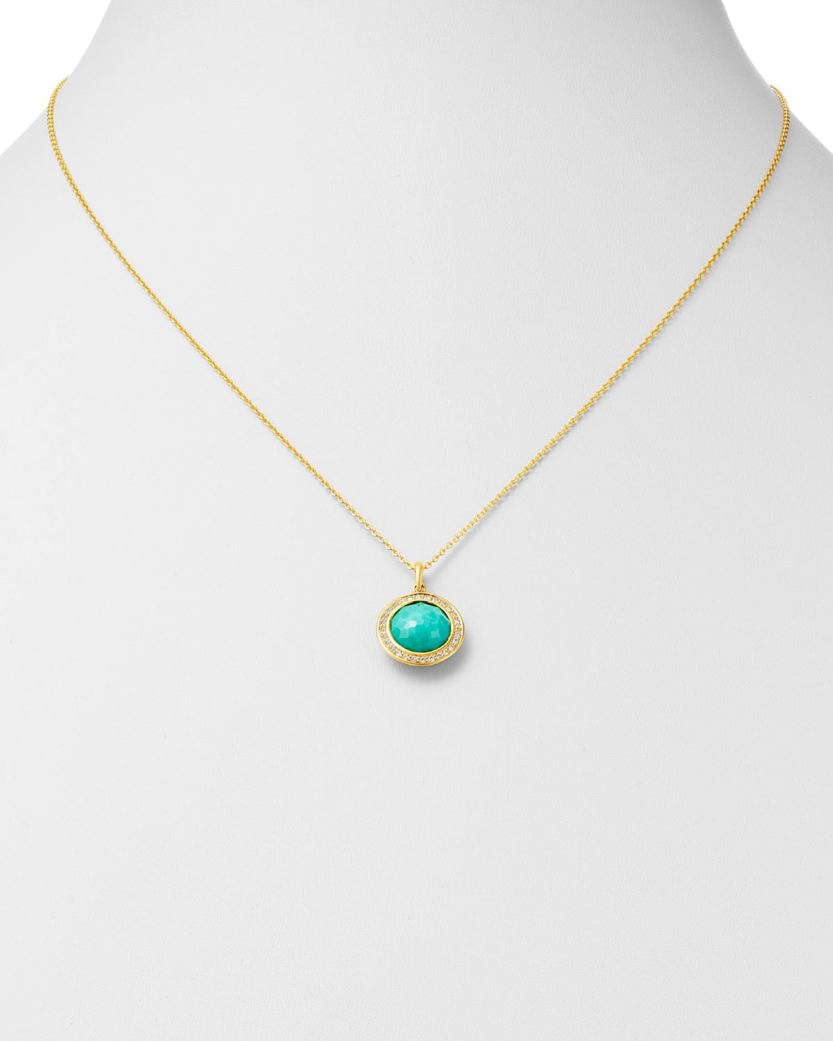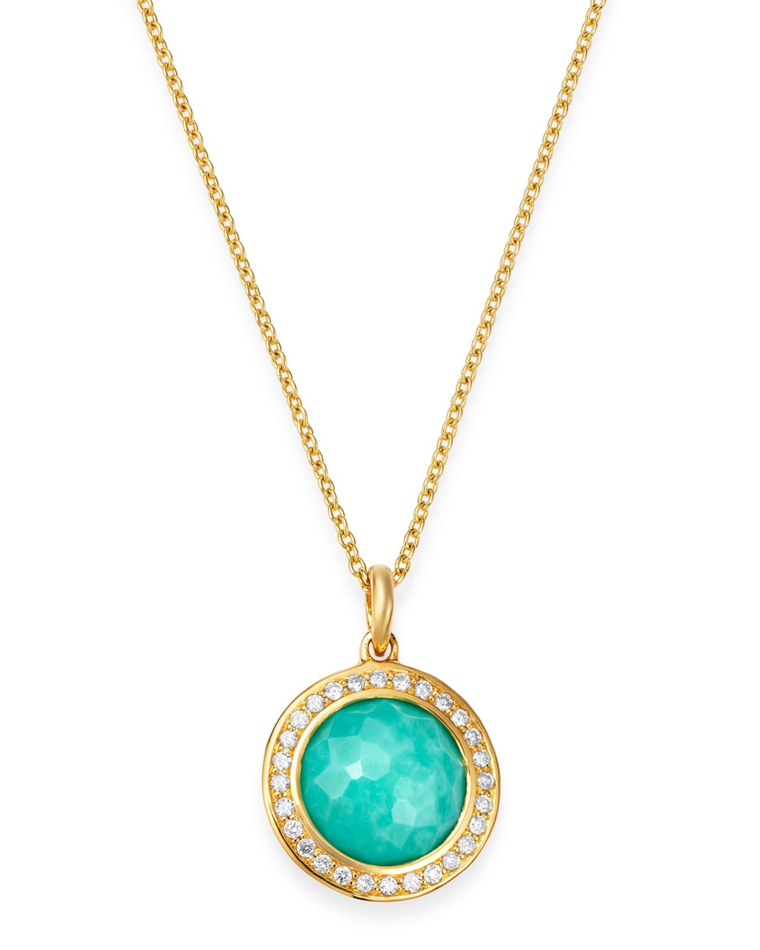 This 18K Yellow Gold Lollipop Turquoise Mini Pendant Necklace with Pavé Diamonds by Ippolita blends radiant turquoise with the brilliance of pavé diamonds. The elegant pendant, set in 18K yellow gold, makes this necklace a versatile piece for both casual and formal occasions.