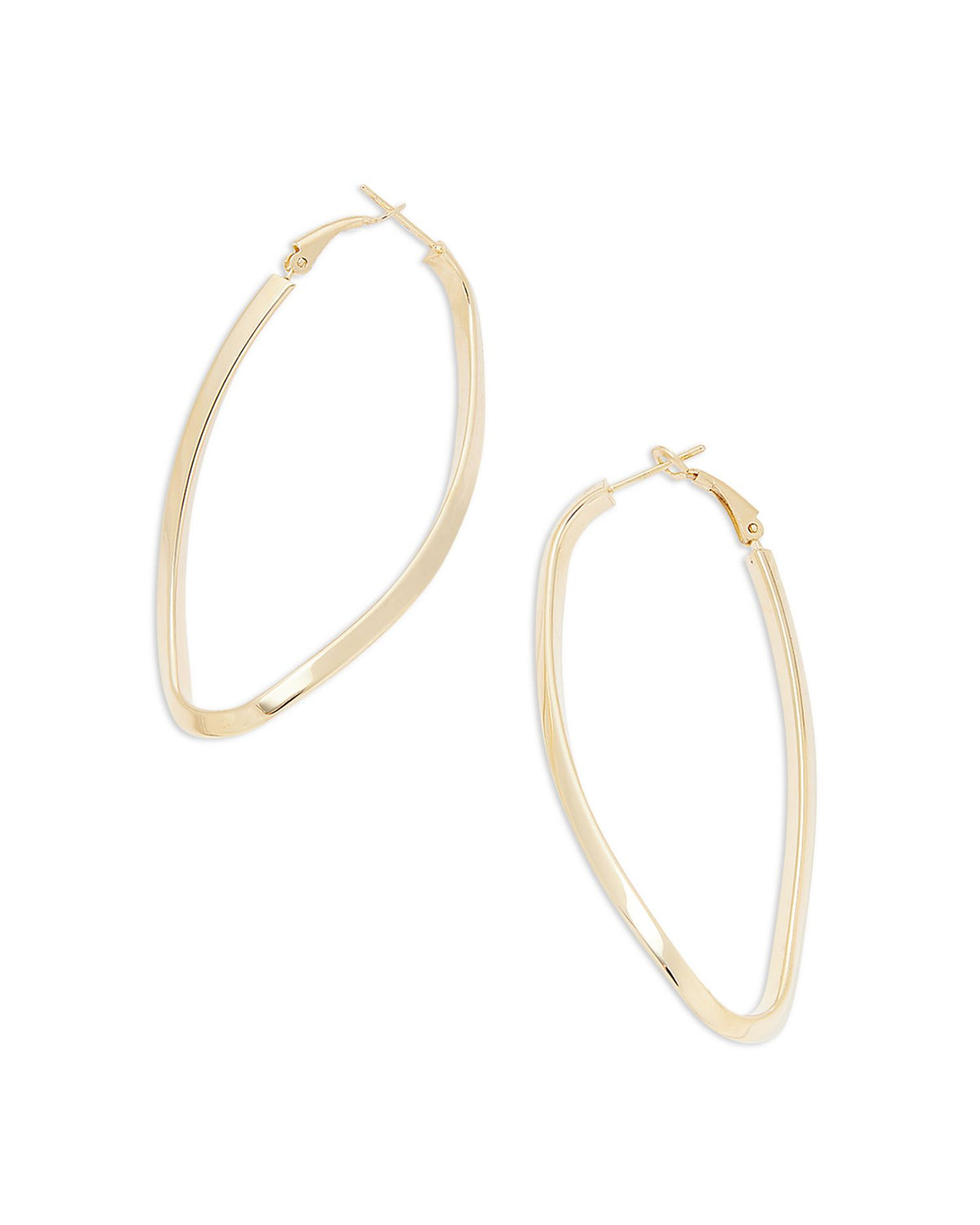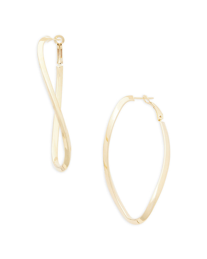 These Alex Polished Twist Large Hoop Earrings by Jennifer Zeuner offer a contemporary twist on a classic design. Crafted in 18K gold-plated sterling silver, their bold size and polished finish make them a striking statement accessory for any occasion.
