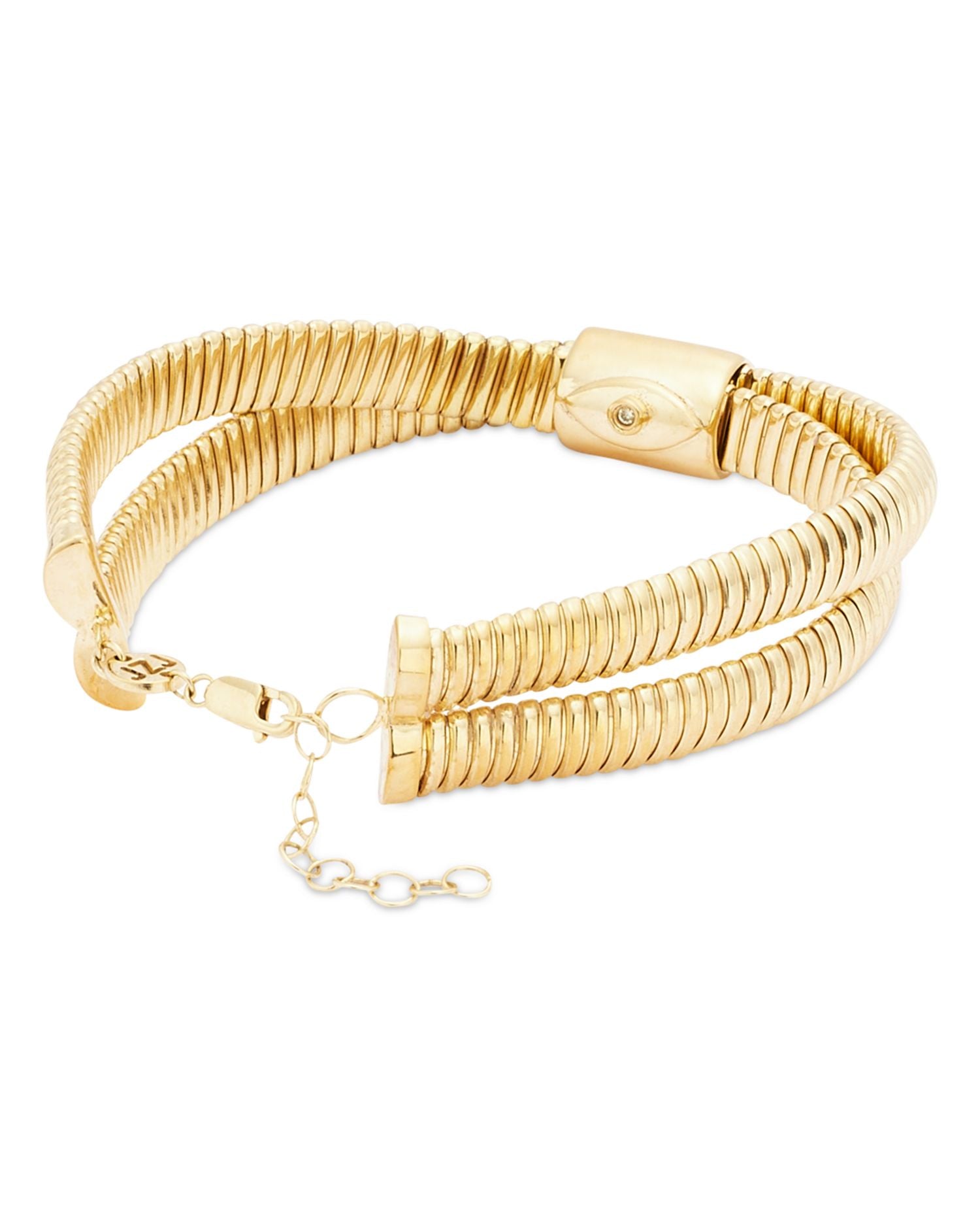 Handcrafted in 18K gold-plated sterling silver with a diamond accent. Measures 6'L with a 1' extender and a lobster clasp closure.