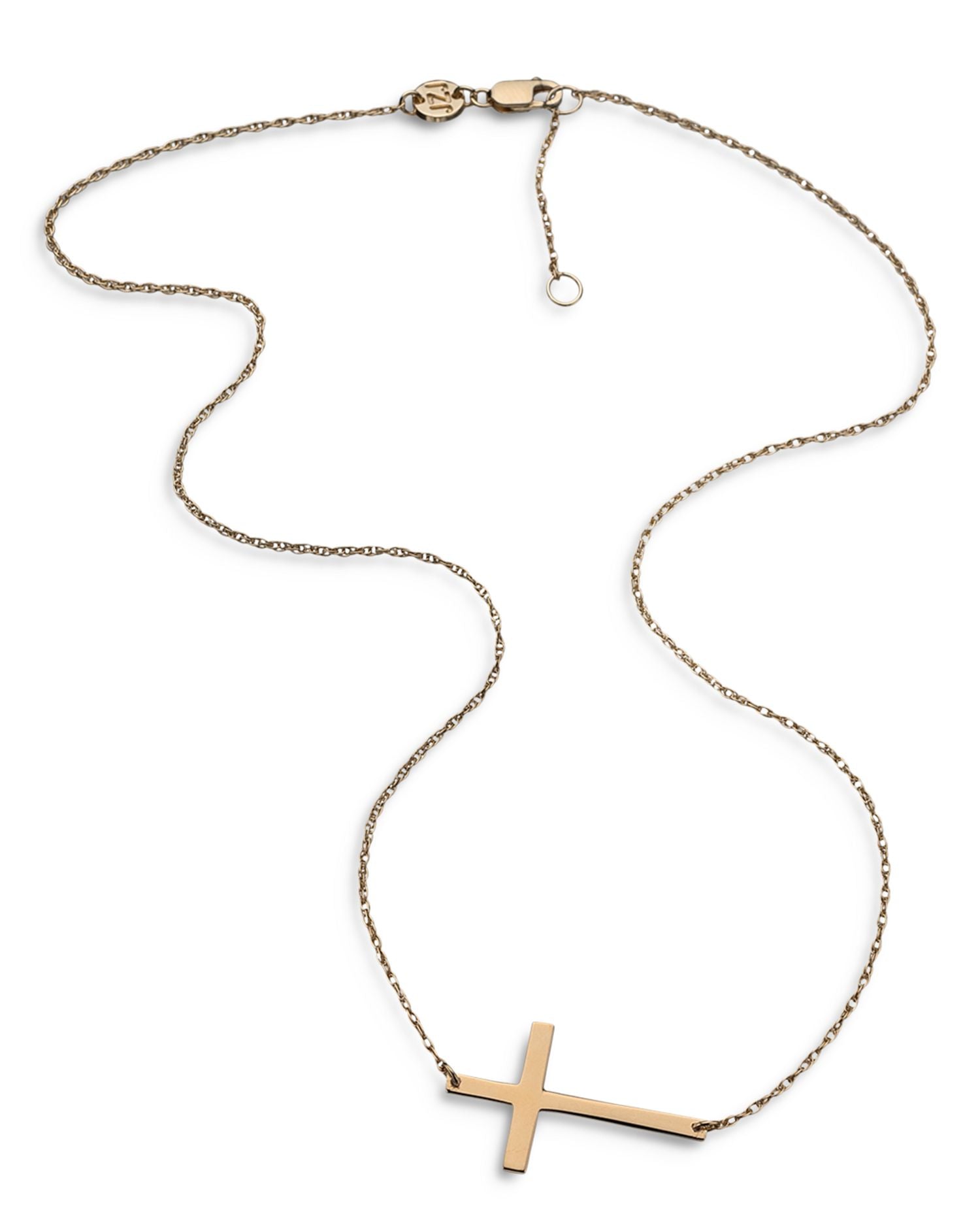 Handcrafted in 14K gold-plated sterling silver. Measures 15-16'L with a 1'L cross pendant. Secured with a lobster clasp closure.
