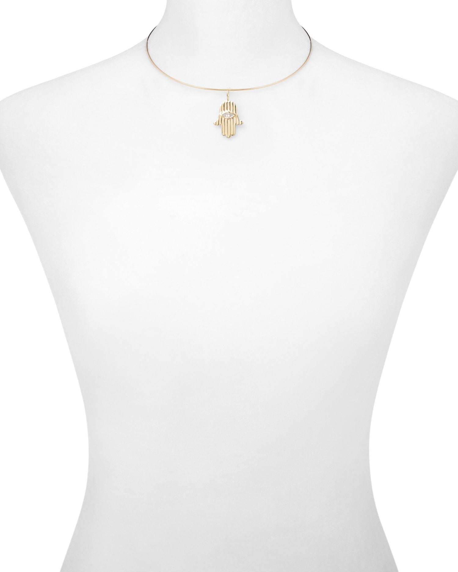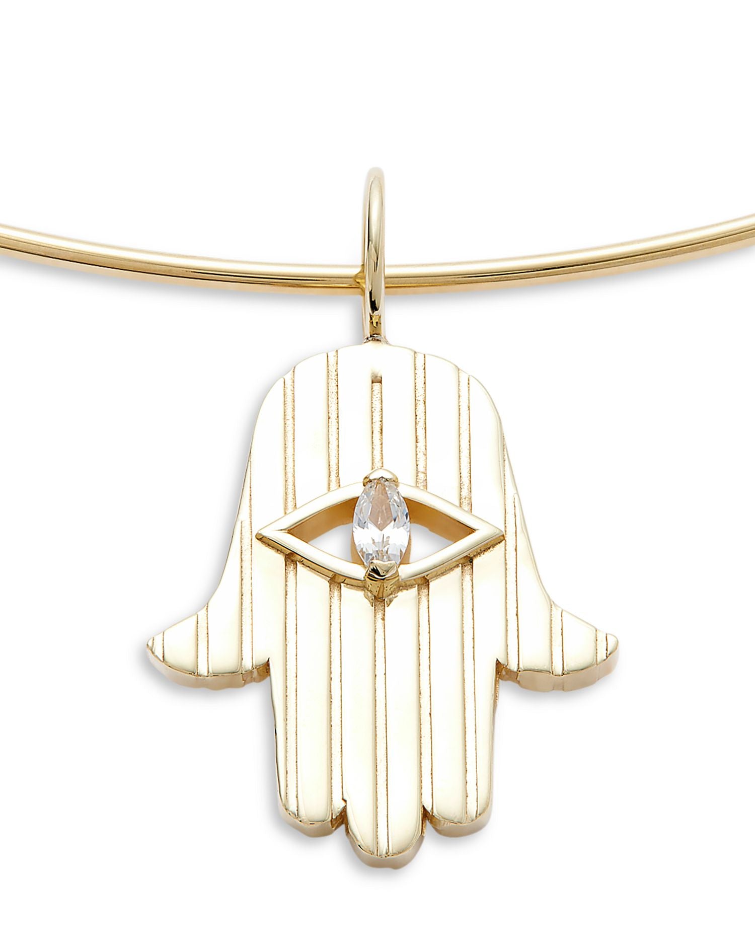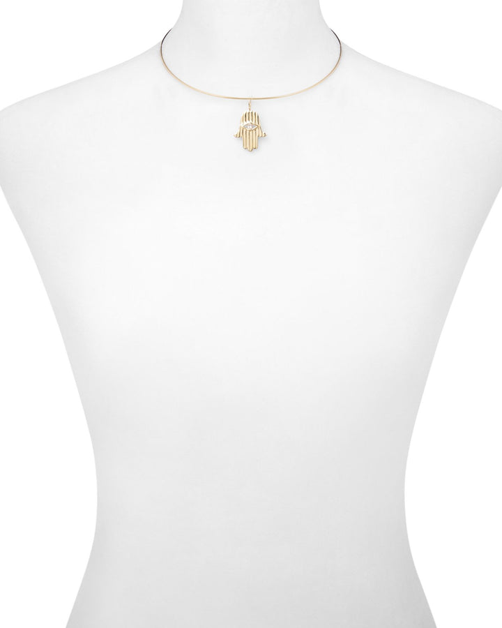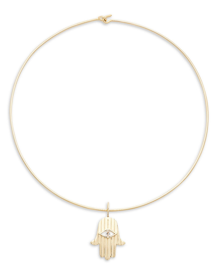 Sari White Sapphire Hamsa Pendant Choker Necklace in 14K Yellow Gold Over Sterling Silver, 14'