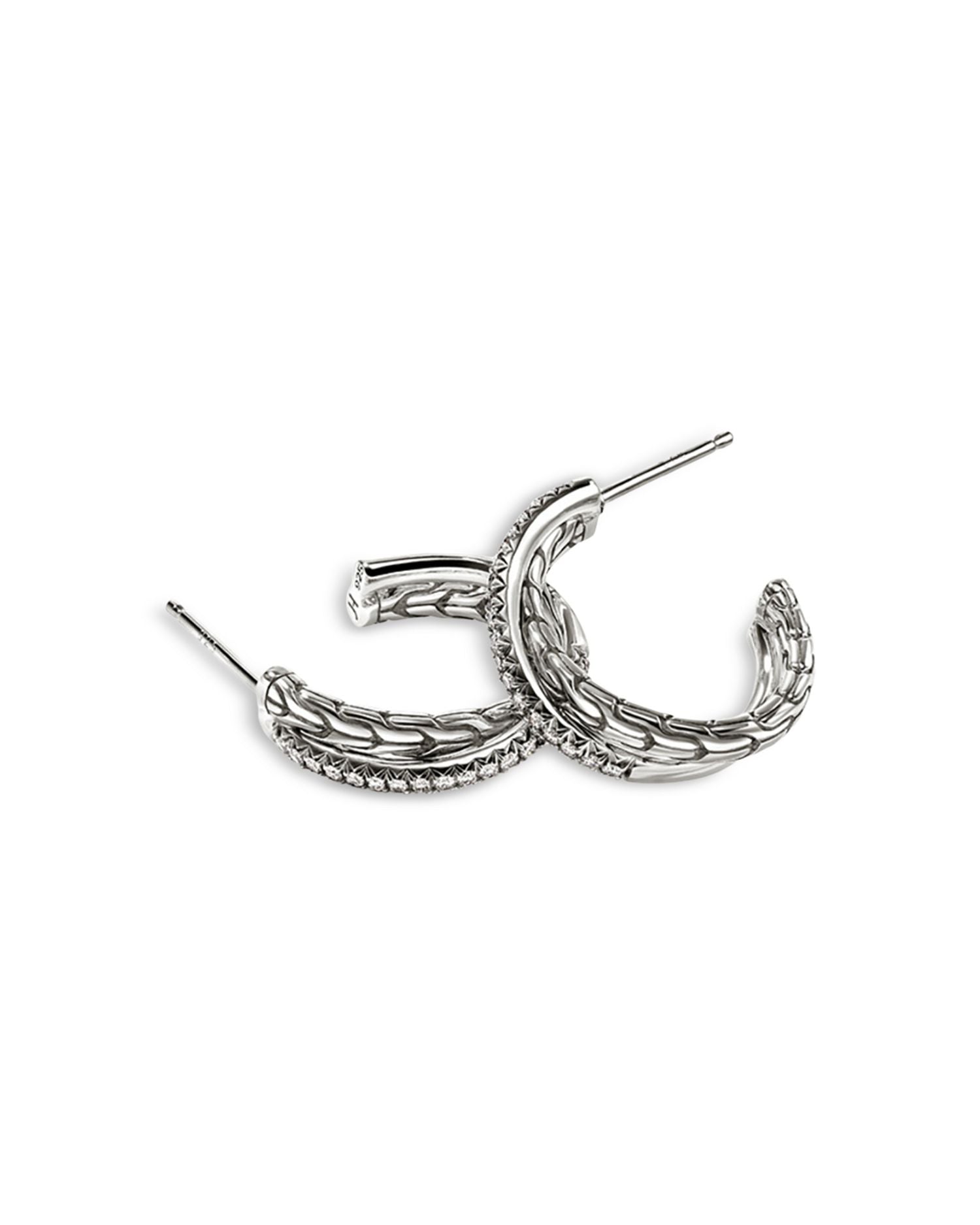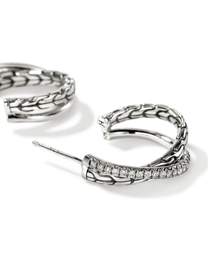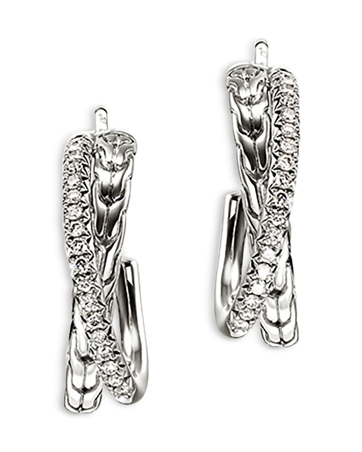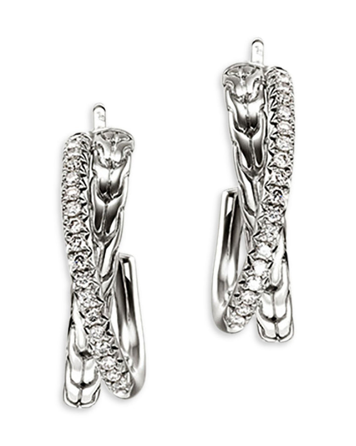 These Sterling Silver JH Essentials Diamond Pavé Crossover Earrings by John Hardy add a refined sparkle with their elegant crossover hoop design. From the JH Essentials collection, they feature dazzling pavé diamonds, making them a versatile choice for both casual and formal occasions.