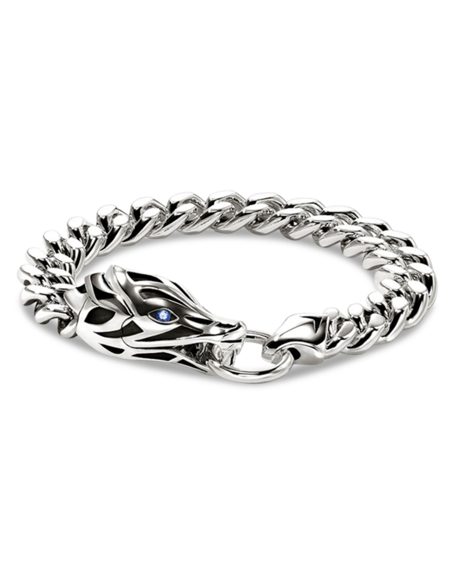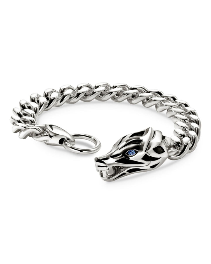 Sterling Silver Naga Blue Sapphire Snake Curb Link Bracelet