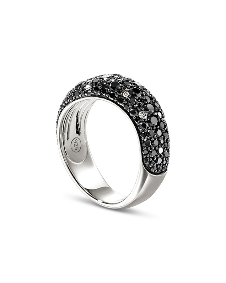 Sterling Silver Surf Diamond Pavé Black Sand Ring