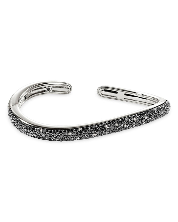 Sterling Silver Surf Diamond Pavé Black Sand Cuff Bangle Bracelet