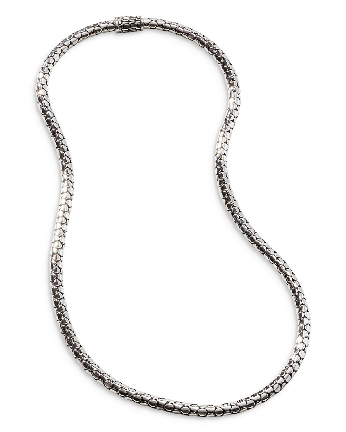 This Sterling Silver Dot Small Chain Necklace by John Hardy combines simplicity and elegance with its polished design and unique dot motif. Its versatile style and sterling silver craftsmanship make it an ideal piece for layering or wearing alone.