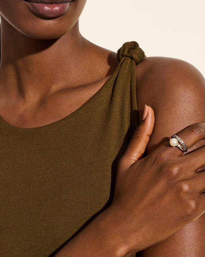 This Sterling Silver JH Essentials Cultured Freshwater Pearl Crossover Statement Ring by John Hardy features an elegant design that pairs a luminous pearl center with a bold multi-band crossover silhouette. Perfect for adding intrigue to your jewelry collection.