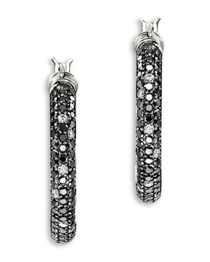 Sterling Silver JH Essentials Diamond Pavé Black Sand Hoop Earrings