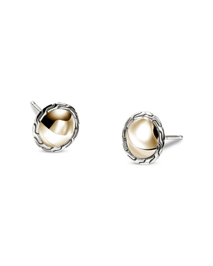 These 14K Yellow Gold & Sterling Silver JH Essentials Stud Earrings by John Hardy showcase dainty sophistication. Polished gold is elegantly framed by textured silver, making them perfect for everyday elegance.