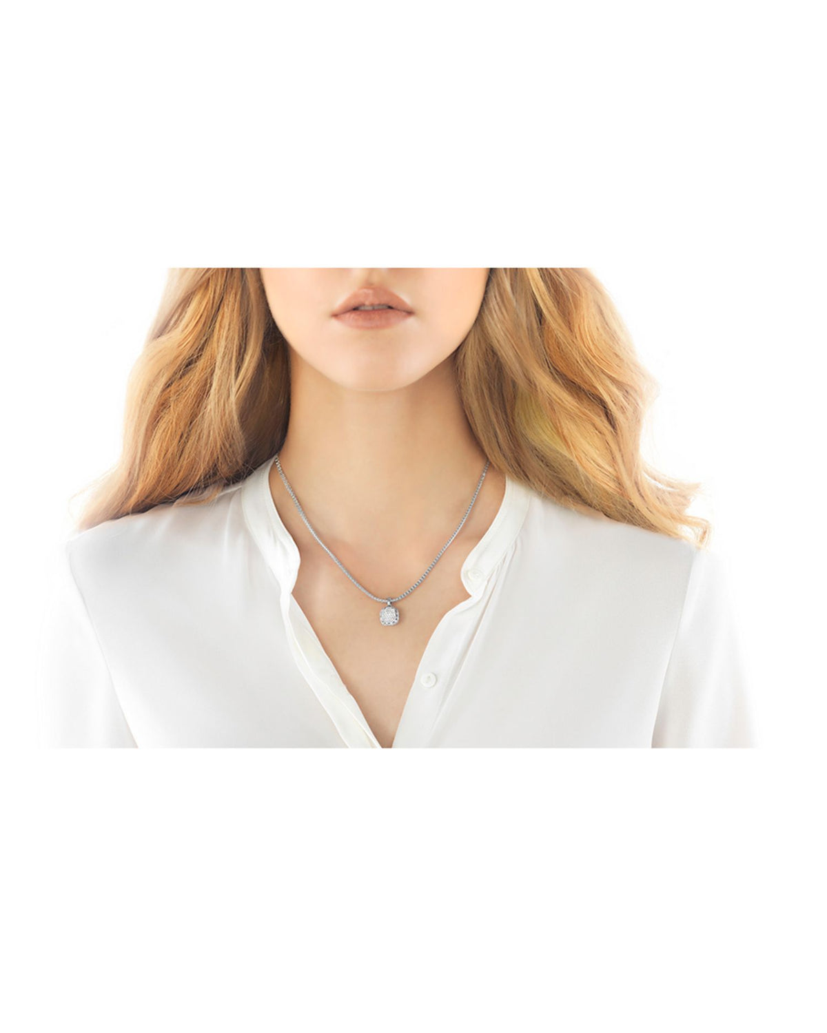 Sterling Silver Classic Diamond Pavé Square Disc Pendant Necklace, 16-18'