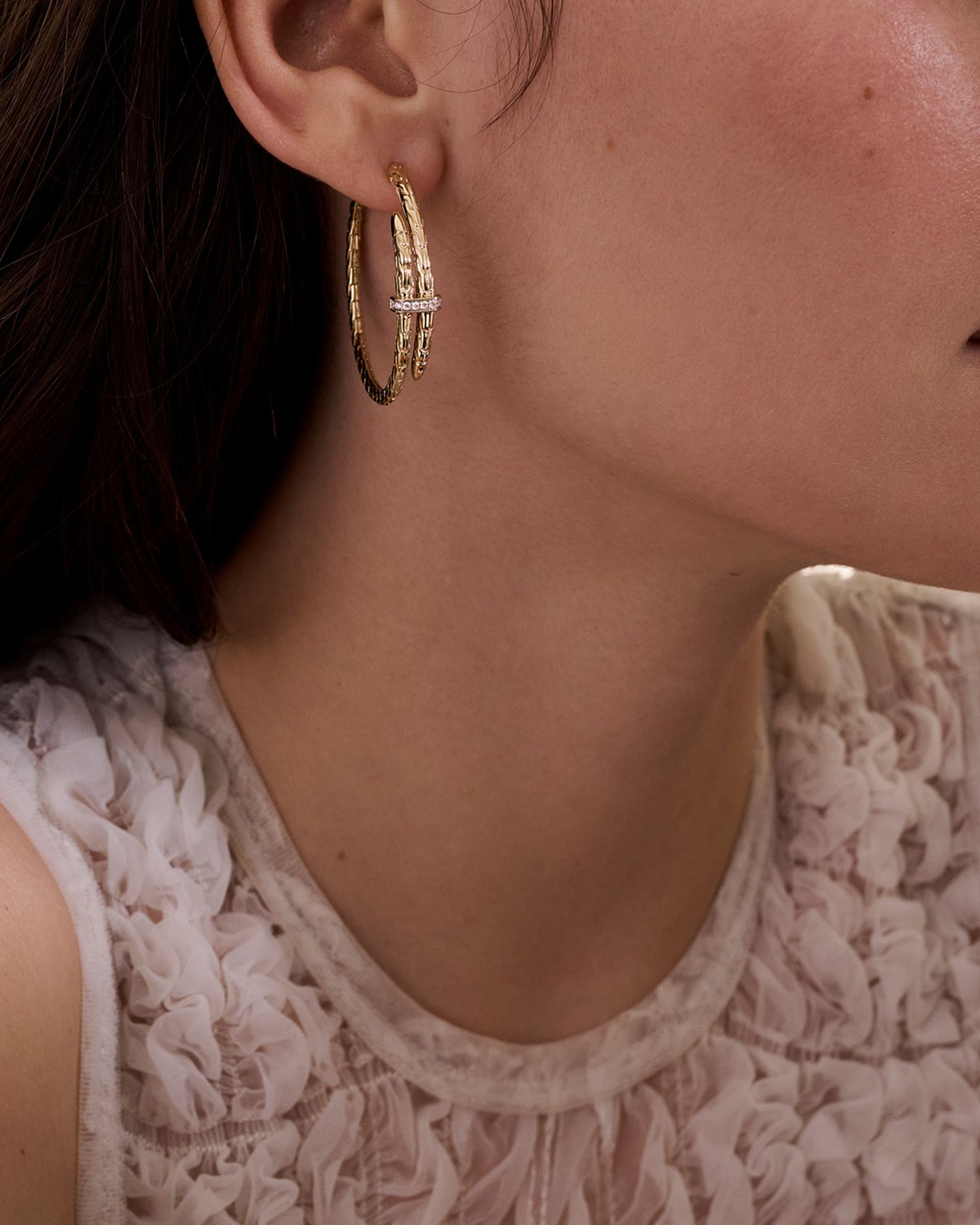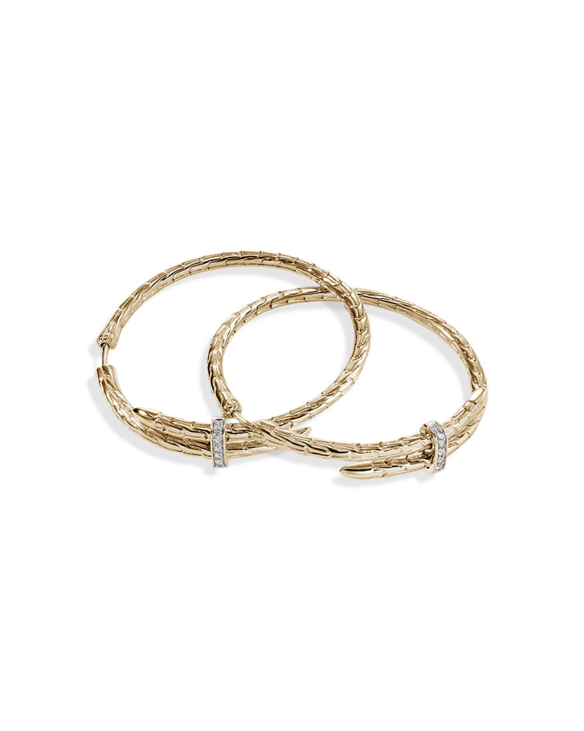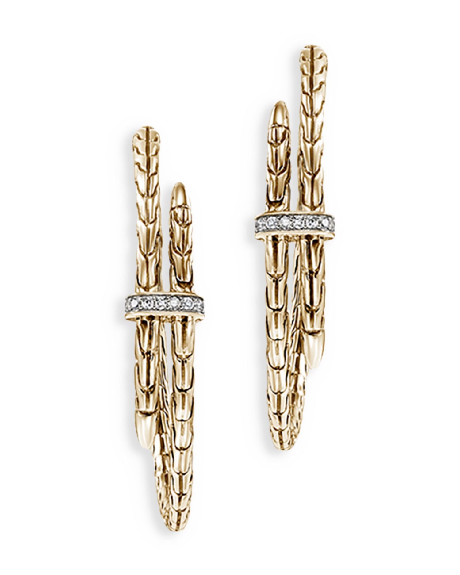 These 14K Yellow Gold Spear Diamond Coil Hoop Earrings by John Hardy feature a sleek coil design enhanced with pavé diamonds, perfect for elevating any look.