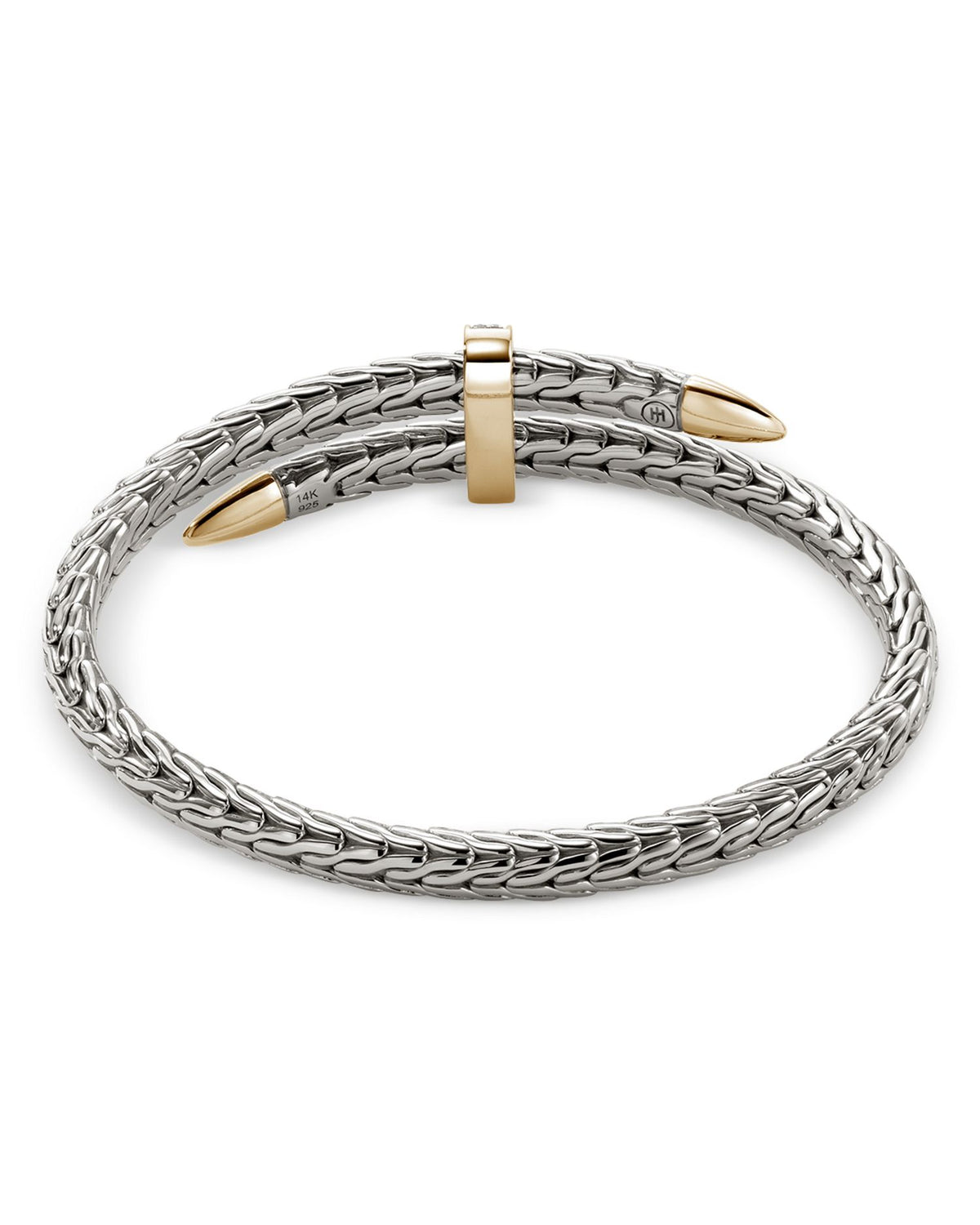 Handcrafted in 14K yellow gold and sterling silver with 0.24 ct. t.w. diamonds. Medium size with a bypass design.