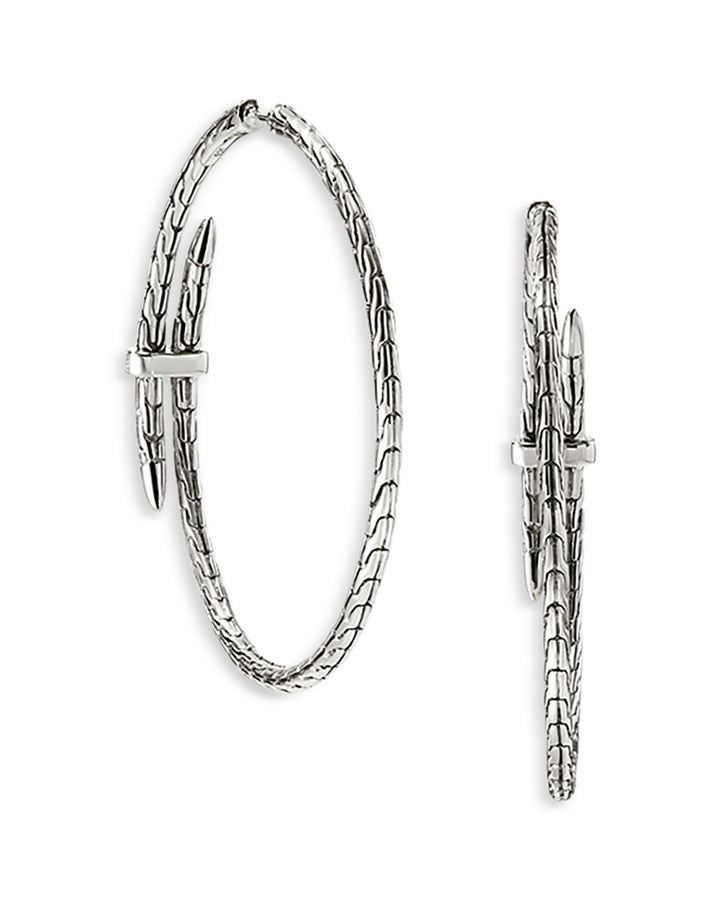 These Sterling Silver Diamond Spear Large Hoop Earrings by John Hardy from the Spear Collection deliver dramatic style with a touch of brilliance. The large hoop design is enriched with diamond accents, embodying the perfect blend of sophistication and modernity.