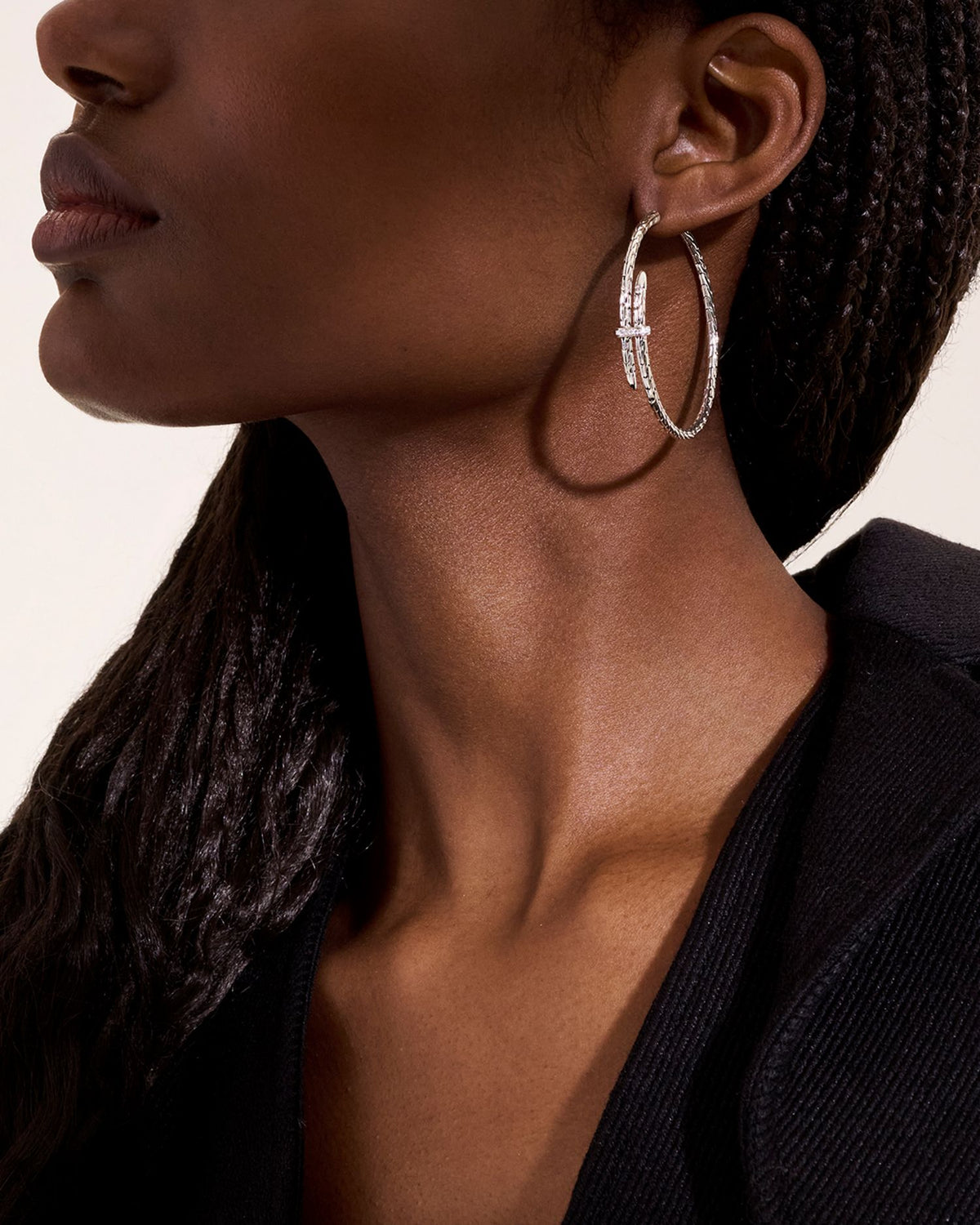 Sterling Silver Diamond Spear Large Hoop Earrings