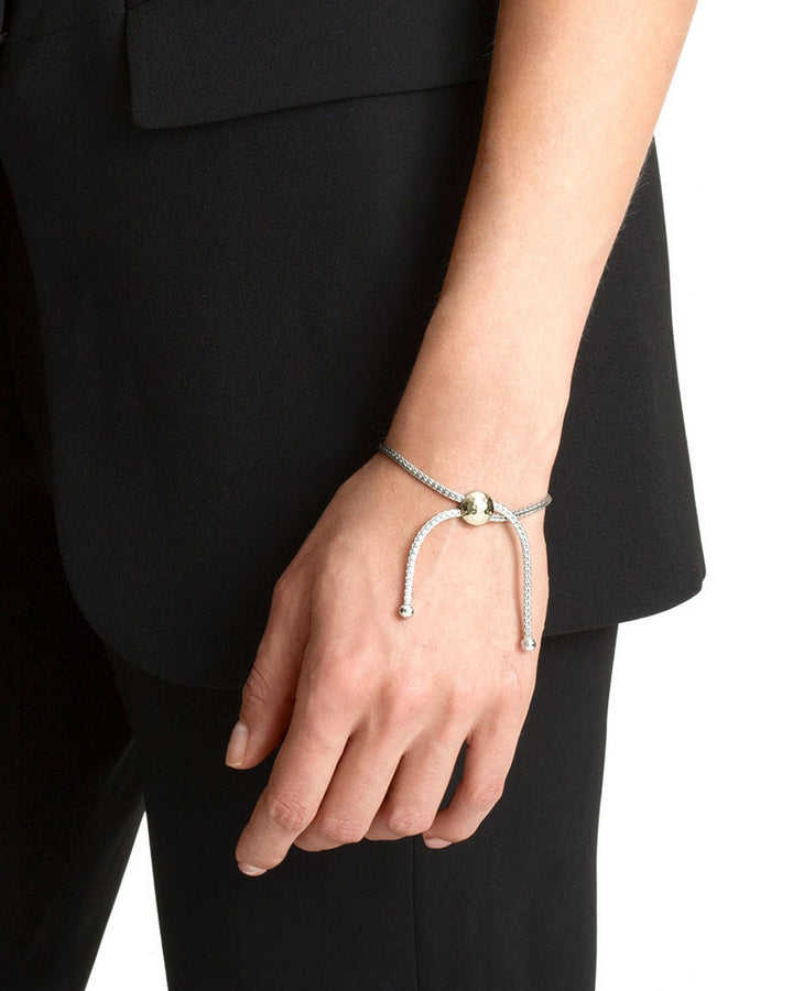 This Sterling Silver and 18K Bonded Gold Classic Chain Hammered Ball Bracelet by John Hardy combines the timeless Classic Chain design with a modern hammered ball detail. Its two-tone finish ensures it pairs effortlessly with any jewelry collection, making it a versatile accessory.