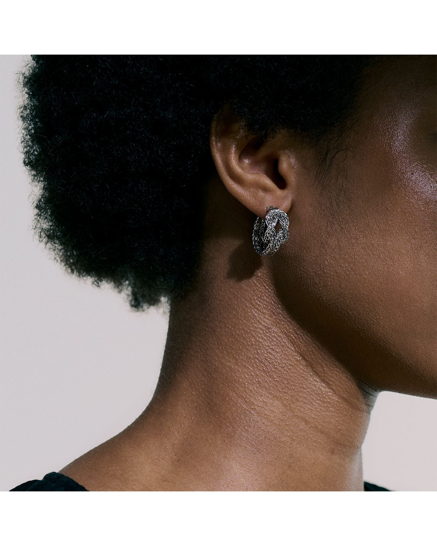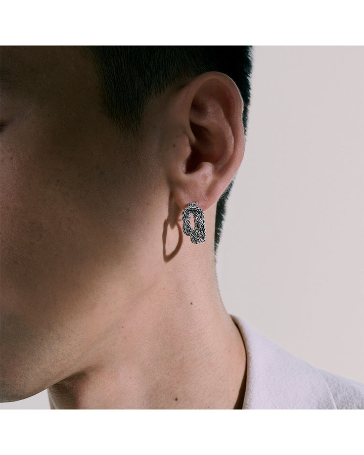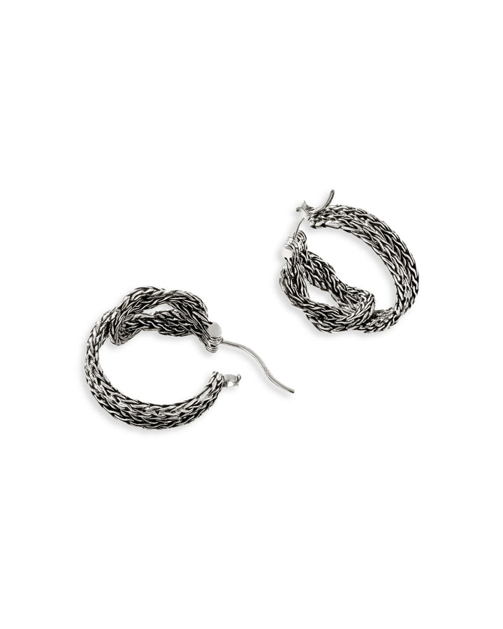 These Sterling Silver Classic Chain Love Knot Manah Small Hoop Earrings by John Hardy are a modern twist on classic hoops. The chic love knot detail adds a touch of refinement, making these earrings a versatile addition to your jewelry collection.