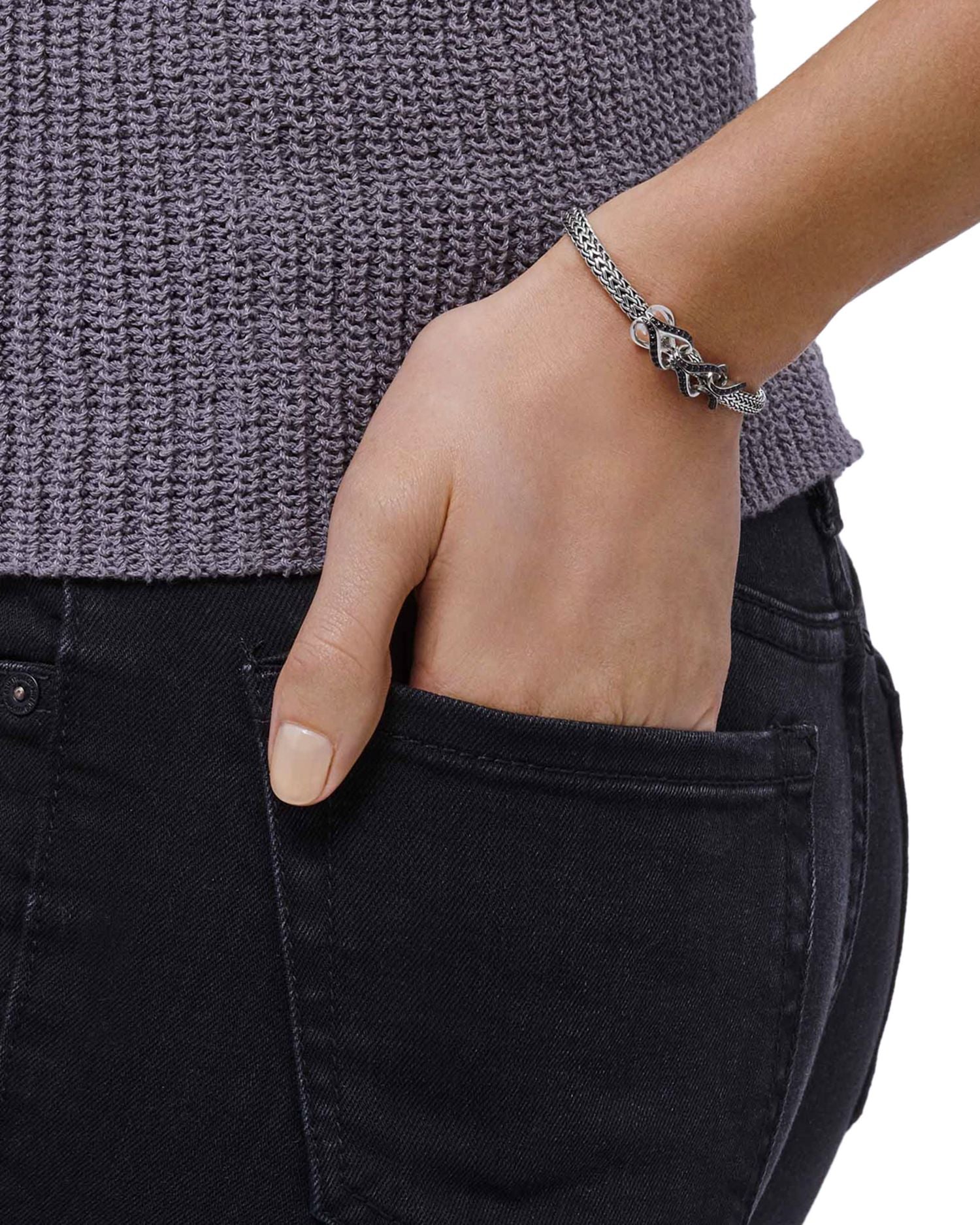 This Sterling Silver Classic Chain Black Sapphire & Black Spinel Small Bracelet by John Hardy is a bold, luxurious addition to the Classic Chain collection. The striking combination of black sapphires and black spinel gemstones makes this bracelet a standout piece for contemporary styling.