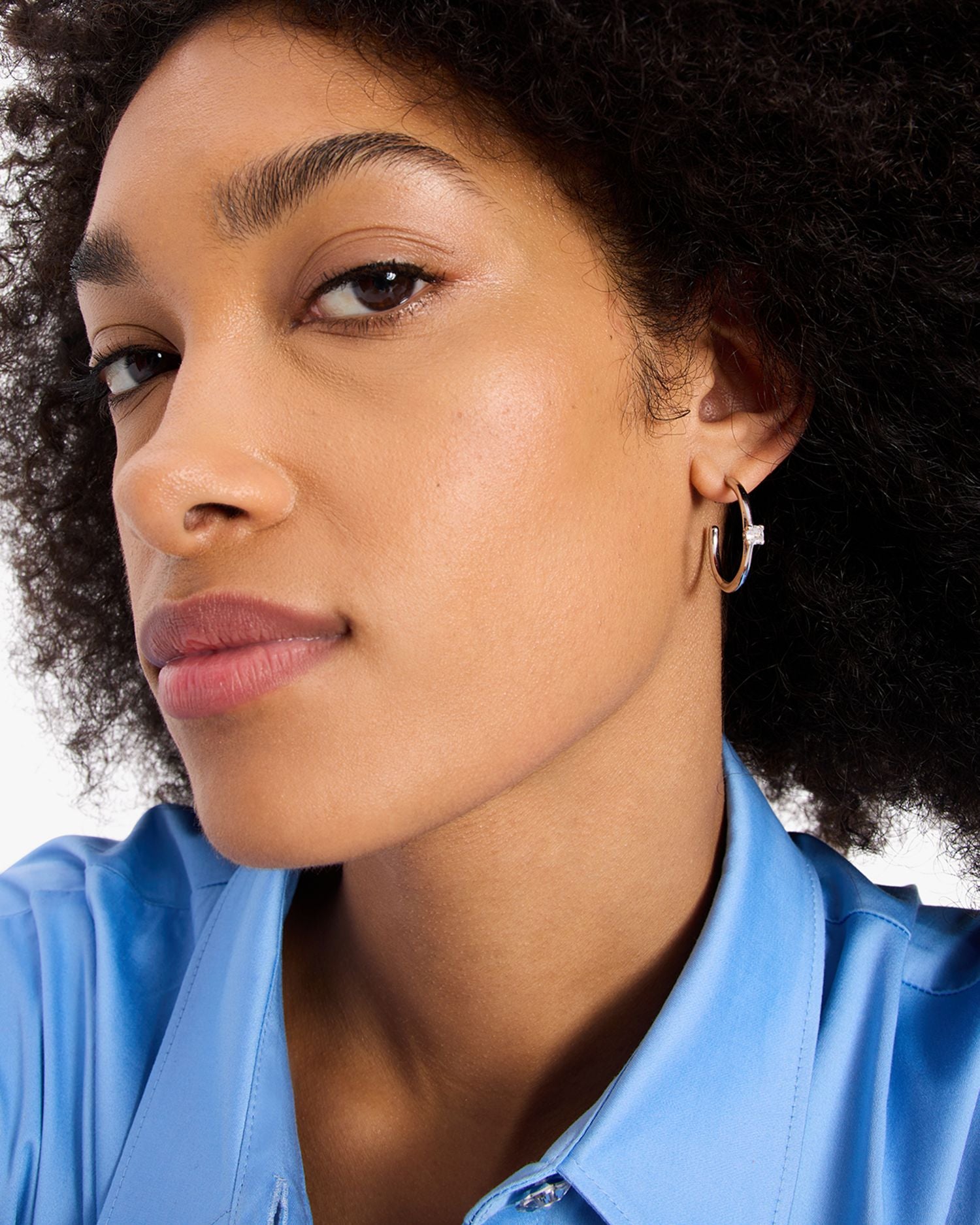 These Little Luxuries Cubic Zirconia Solitaire Small Hoop Earrings by Kate Spade New York from the Little Luxuries collection are a chic everyday essential. Featuring a solitaire cubic zirconia accent, these hoops exude understated sophistication.
