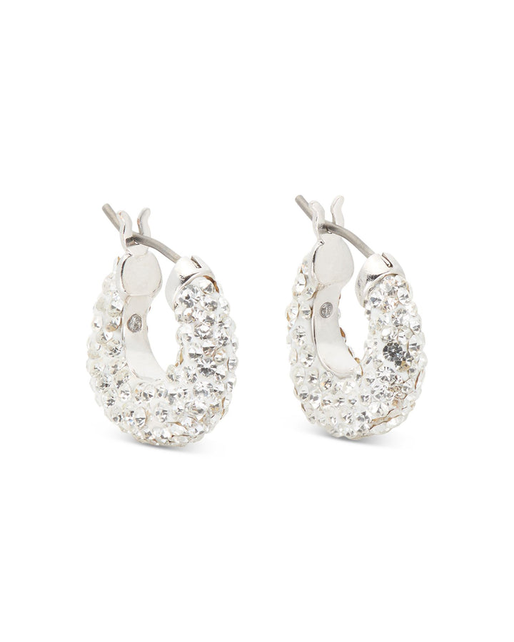 These Pavé Huggie Hoop Earrings in Silver Tone by Kate Spade New York bring a modern sparkle to your accessories. Featuring a sleek design adorned with pavé stones, these hoops are perfect for adding subtle elegance to your look.