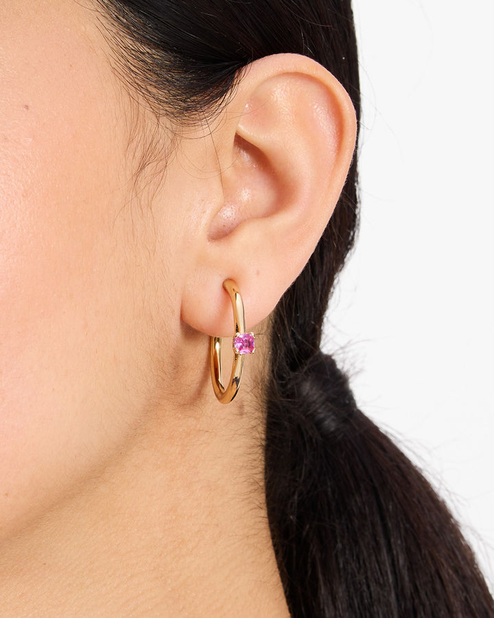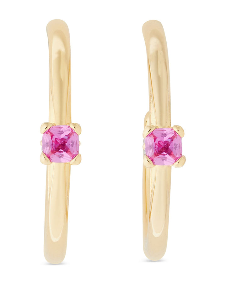 Little Luxuries Pink Cubic Zirconia Solitaire Small Hoop Earrings