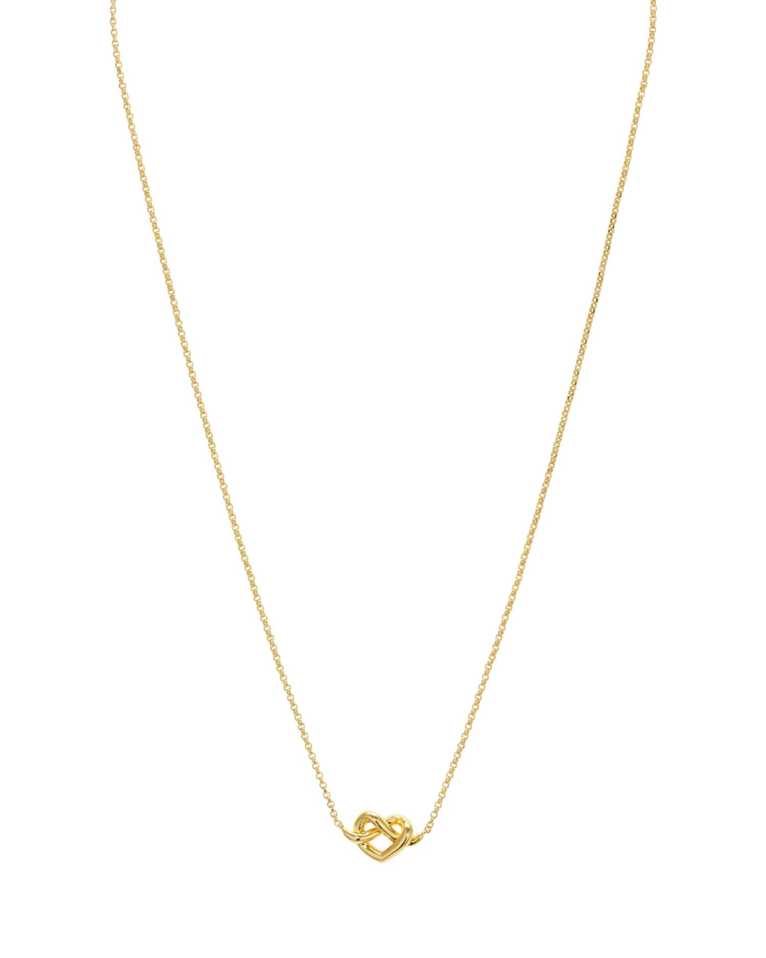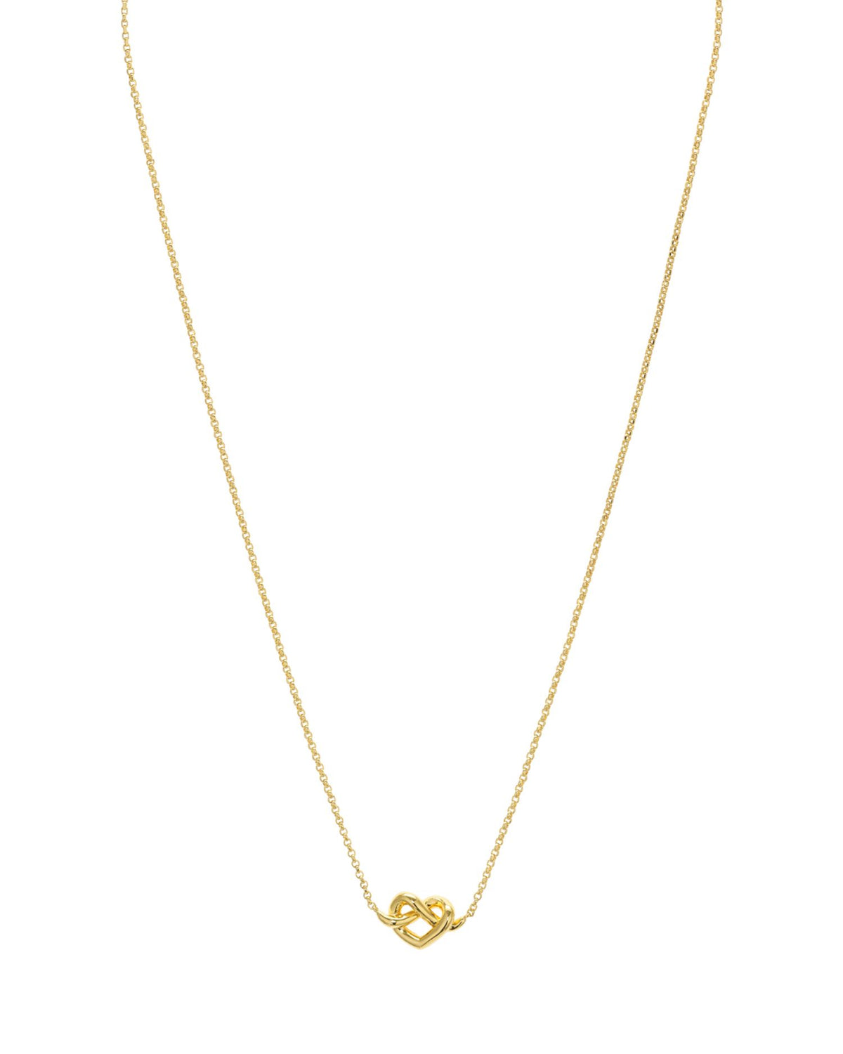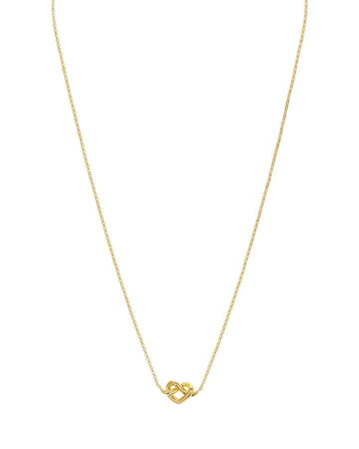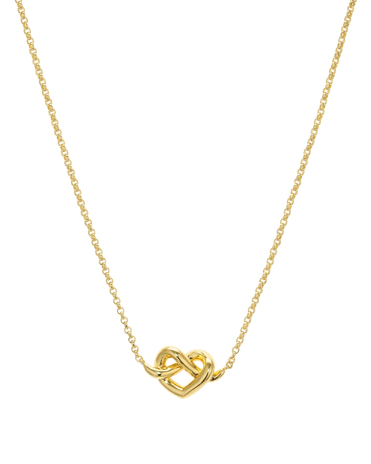 This Loves Me Knot Mini Pendant Necklace by Kate Spade New York symbolizes love and connection. Its elegant knot design, adorned with cubic zirconia, makes it a meaningful piece perfect for gifting or personal wear. The delicate chain adds a feminine touch.