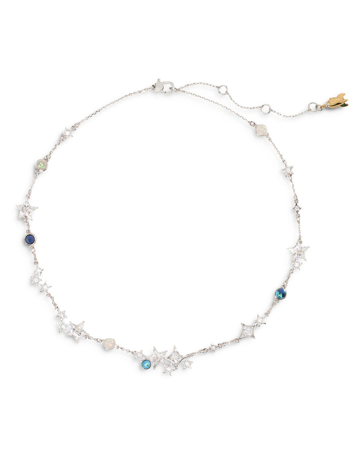 Mixed Stone Star Collar Necklace in Silver Tone, 16'-19'