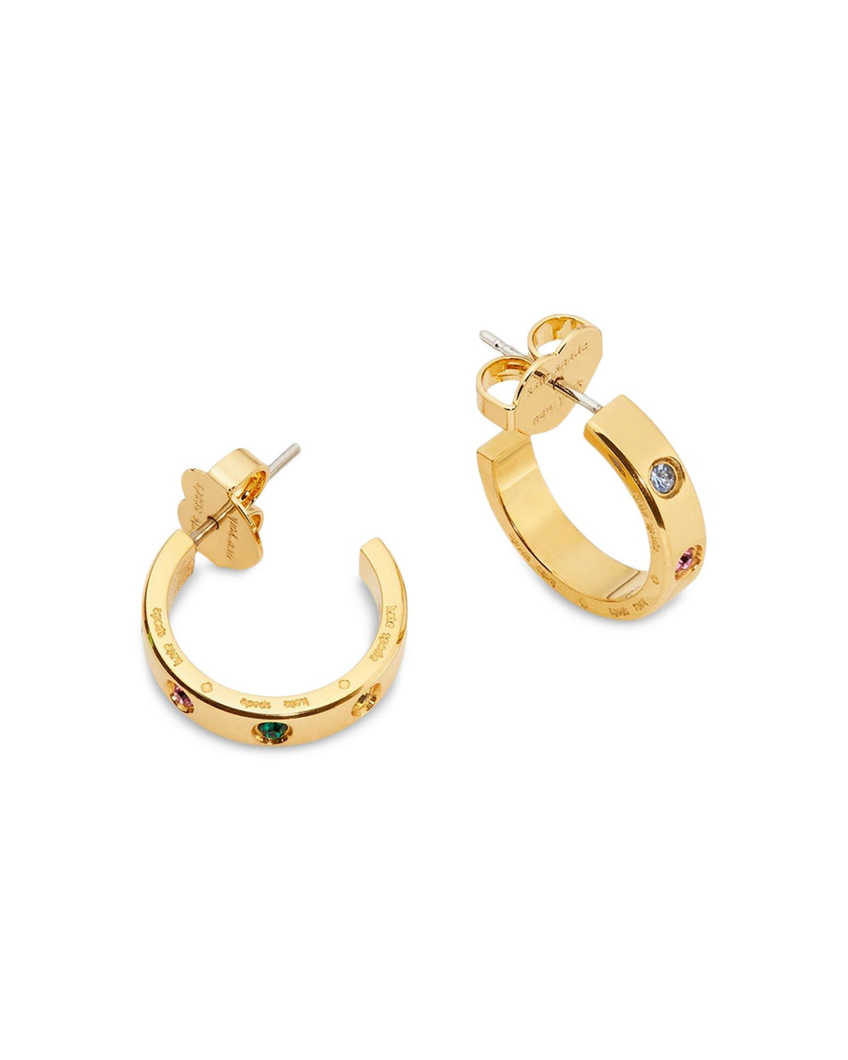 These Set in Stone Multicolor Huggie Hoop Earrings by Kate Spade New York combine vibrant glass stones and cubic zirconia for a playful yet refined look. Their compact design makes them perfect for everyday wear while adding a pop of color to your ensemble.