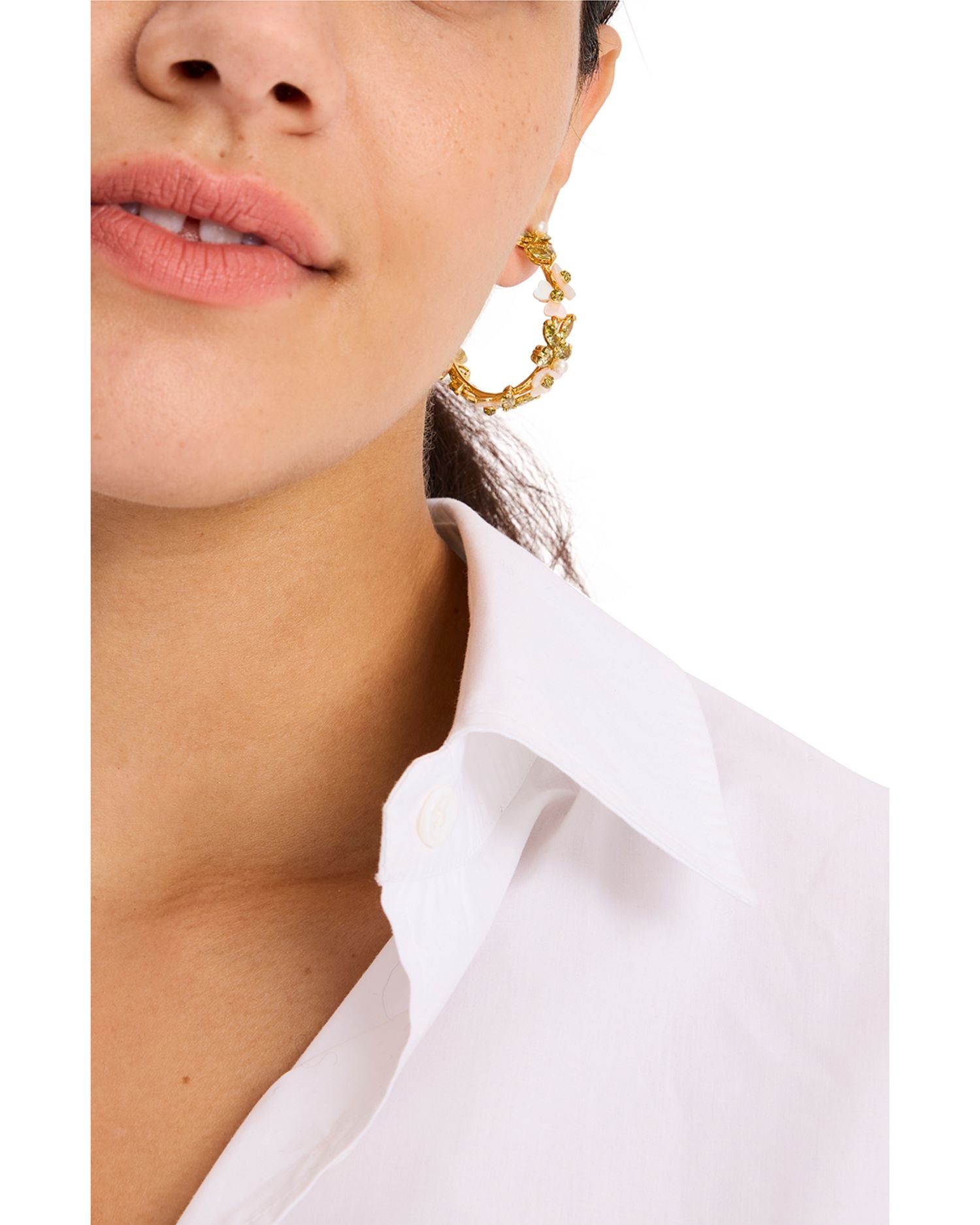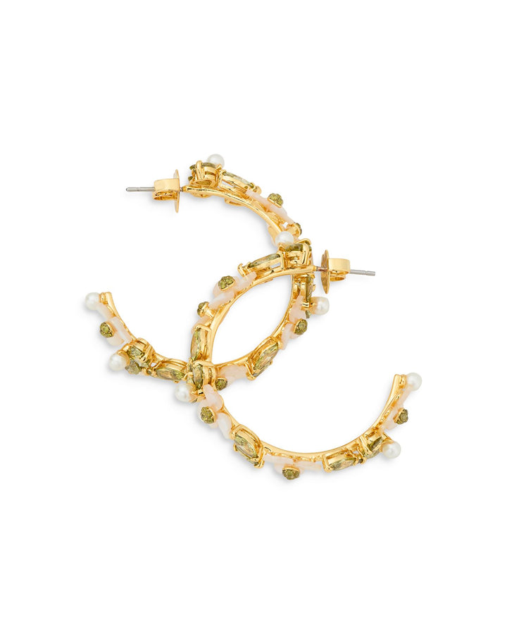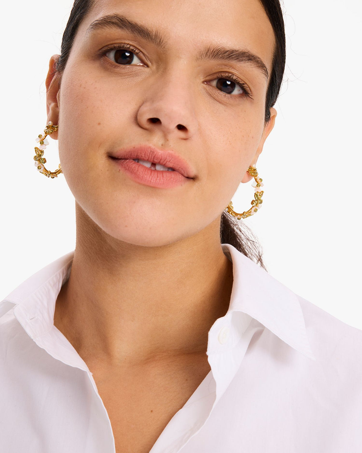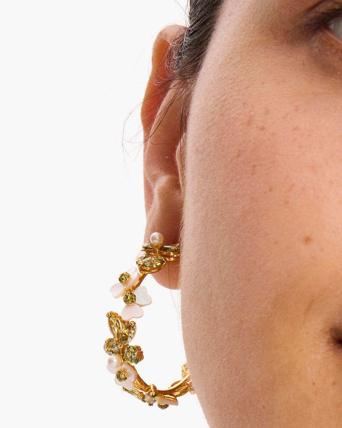These Mixed Stone Flower Hoop Earrings by Kate Spade New York showcase a playful floral design with a mix of cubic zirconia, glass pearls, and mother-of-pearl accents. Their whimsical yet elegant style makes them ideal for day-to-night wear.