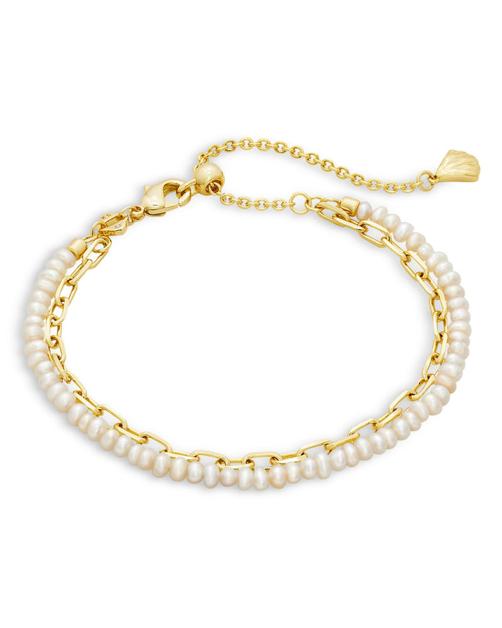 Lolo Link & Cultured Freshwater Pearl Double Row Slider Bracelet in 14K Gold Plated