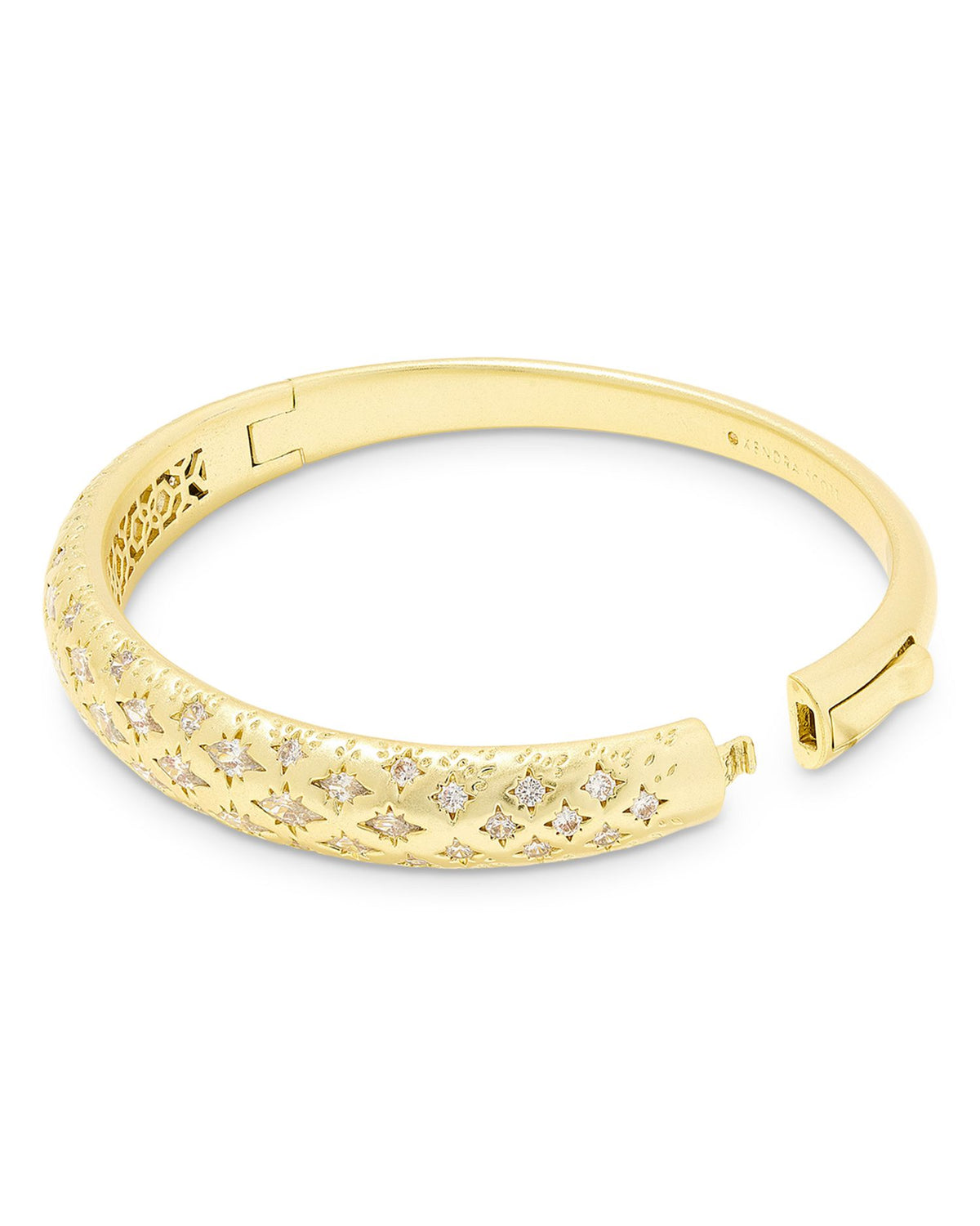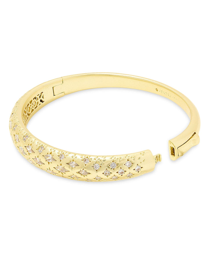 This Holland Pavé Star Bangle Bracelet by Kendra Scott, from the Holland collection, is a sparkling statement piece. The pavé star accents add a celestial touch to the sleek bangle design, making it perfect for stacking or wearing solo.