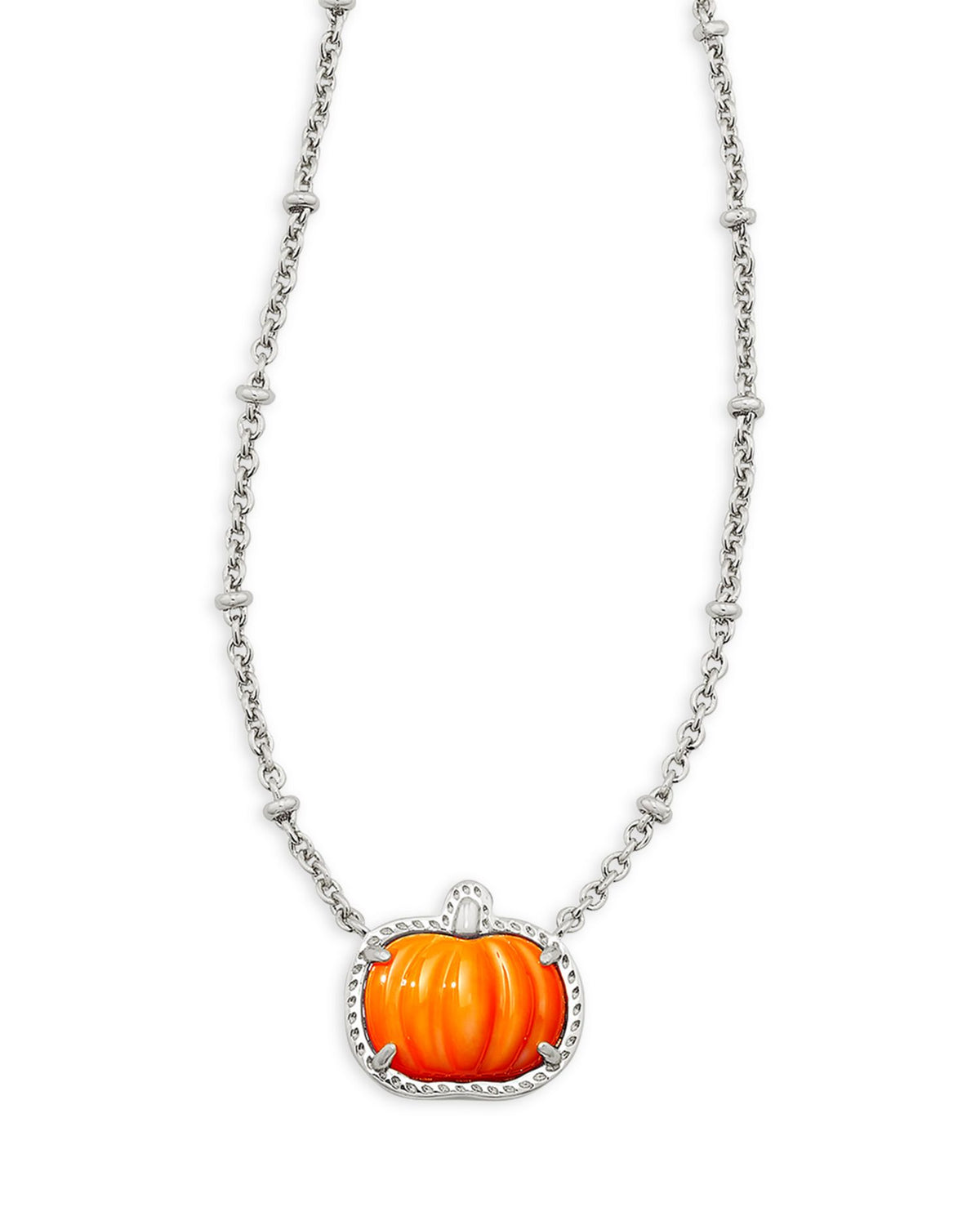 This Gemstone Pumpkin Adjustable Pendant Necklace by Kendra Scott adds a festive charm to your jewelry collection. Featuring orange mother-of-pearl in a whimsical pumpkin design, it’s perfect for celebrating the fall season.