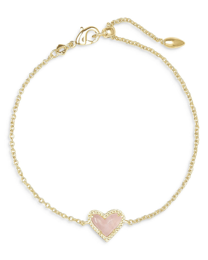 This Ari Quartz Heart Chain Bracelet by Kendra Scott, from the Ari collection, adds a romantic and delicate touch to your jewelry collection. The heart-shaped quartz centerpiece is a charming addition to any outfit.