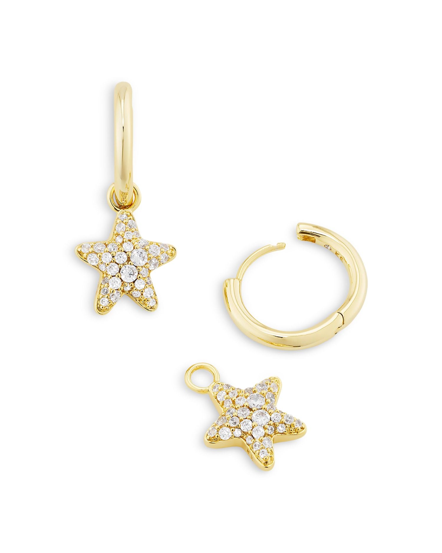 Jae Pavé Star Removable Charm Huggie Hoop Earrings in 14K Gold Plated