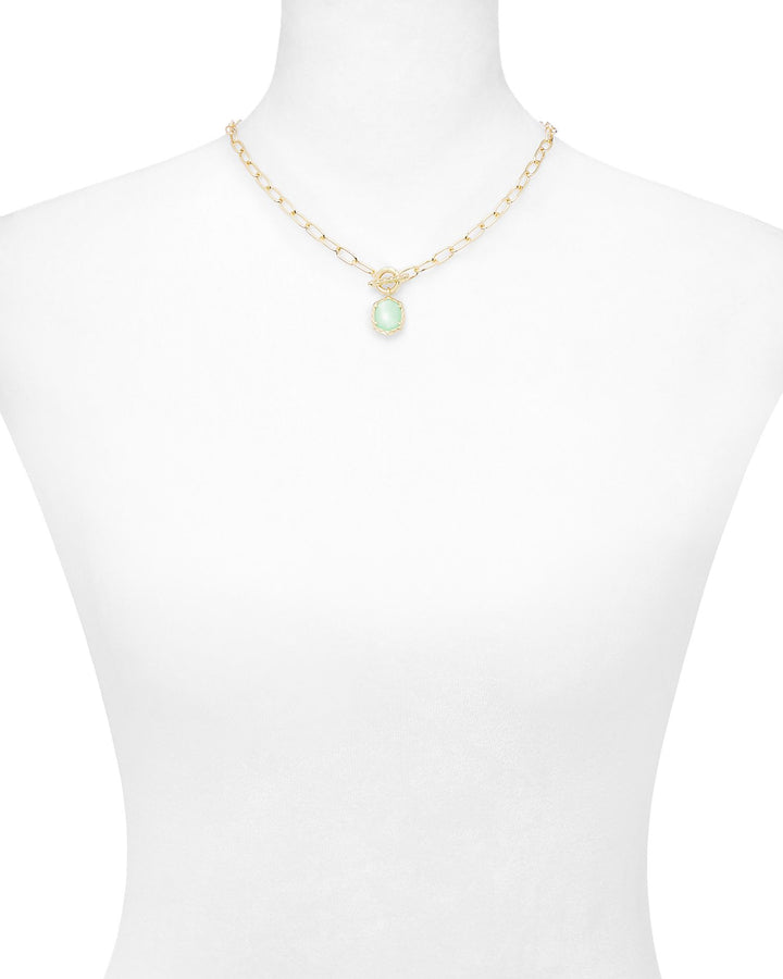 Designed in 14K gold-plated metal with shell, Mother-of-Pearl, or magnesite accents. The necklace measures 18'L with a 0.83'L x 0.51'W pendant and is secured with a toggle clasp closure.