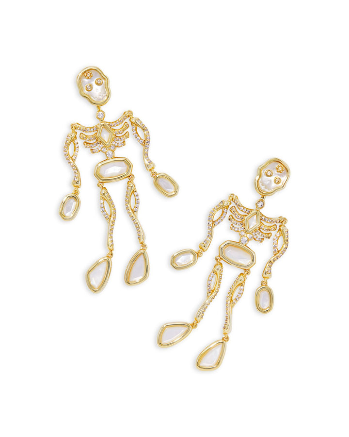 These Pavé & Mother Of Pearl Skeleton Convertible Statement Earrings by Kendra Scott are bold and unique, featuring intricate pavé detailing, mother-of-pearl accents, and a removable body design. Perfect for adding an edge to your jewelry collection, these earrings transition effortlessly from day to night.
