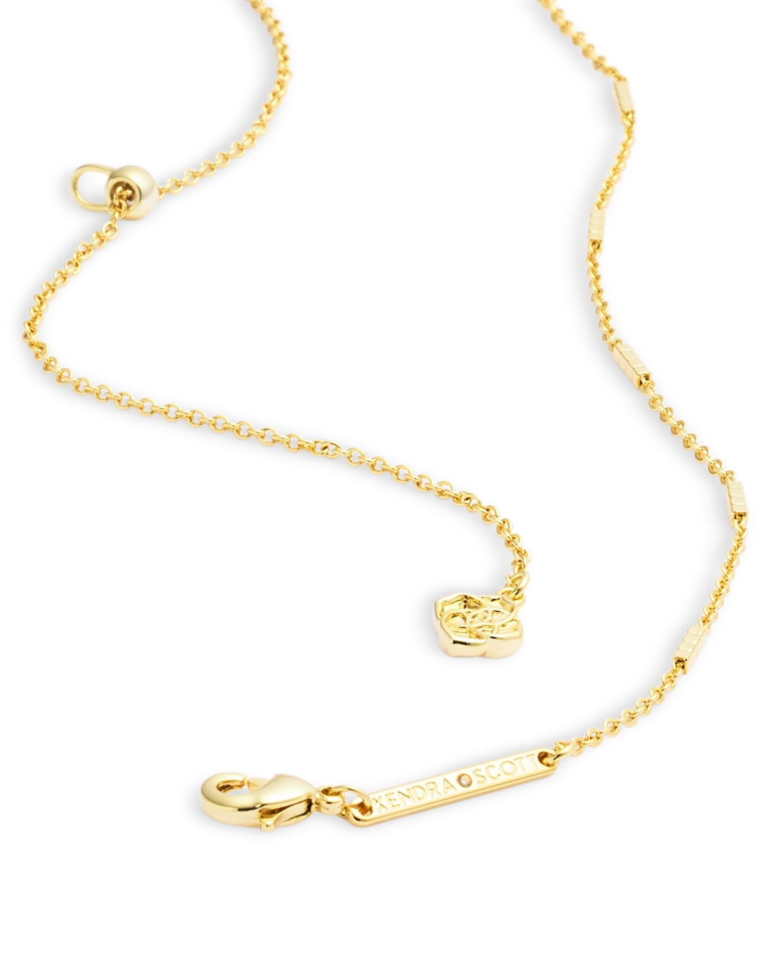This Elisa Stone Adjustable Pendant Necklace by Kendra Scott from the Elisa collection is a signature piece featuring a simulated opal or pink mother-of-pearl stone. Its adjustable design ensures it layers beautifully with other necklaces or shines on its own.