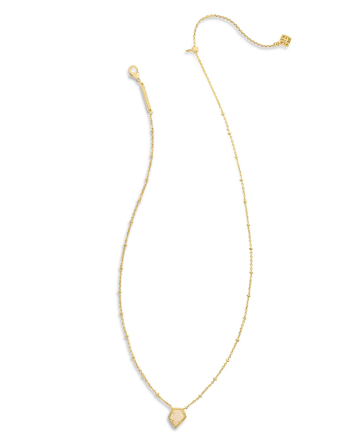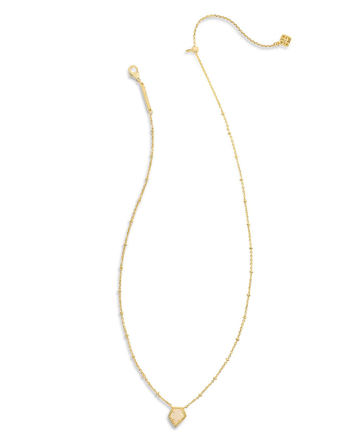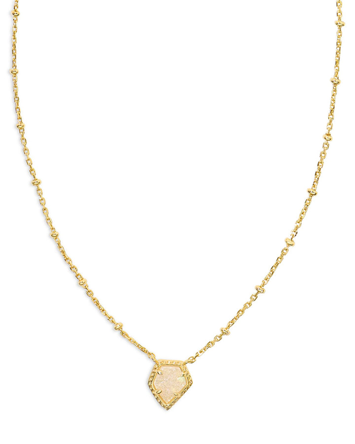This Framed Tess Satellite Pendant Necklace by Kendra Scott is a sleek and modern piece that highlights a framed drusy or opal pendant. Its subtle sparkle and classic design make it a versatile accessory for day or evening wear.