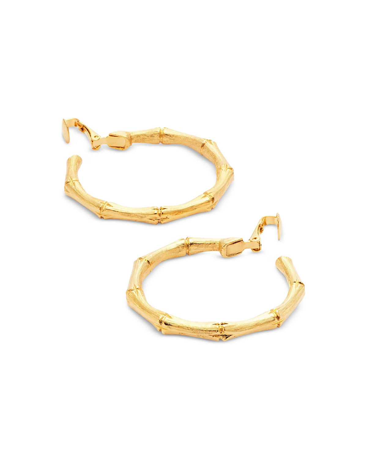 These Bamboo Hoop Clip On Earrings by Kenneth Jay Lane are a bold and versatile design that combines bamboo-inspired texture with luxurious 22K gold plating. Ideal for non-pierced ears, they add a touch of effortless elegance to any look.